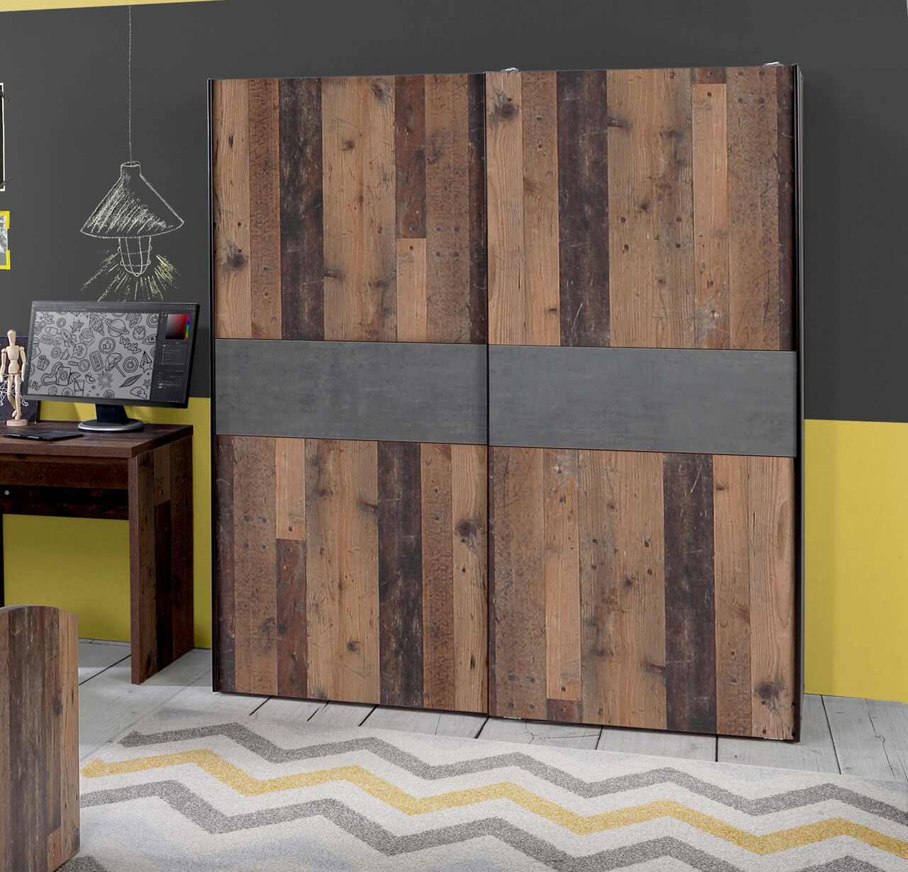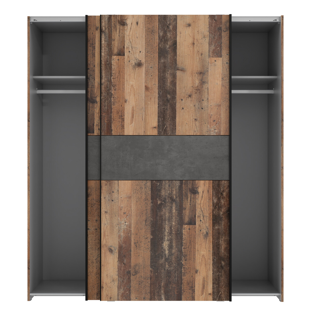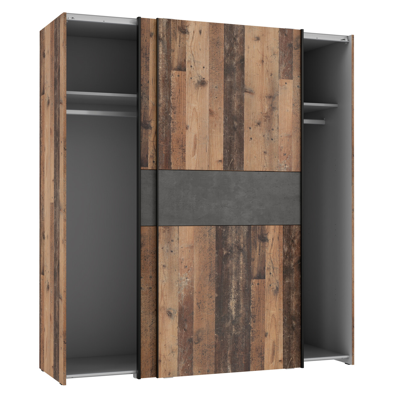 Dulap pentru haine Wijk, Bedora, 170.3x61.2x190.5 cm, PAL/metal, maro antic/gri inchis