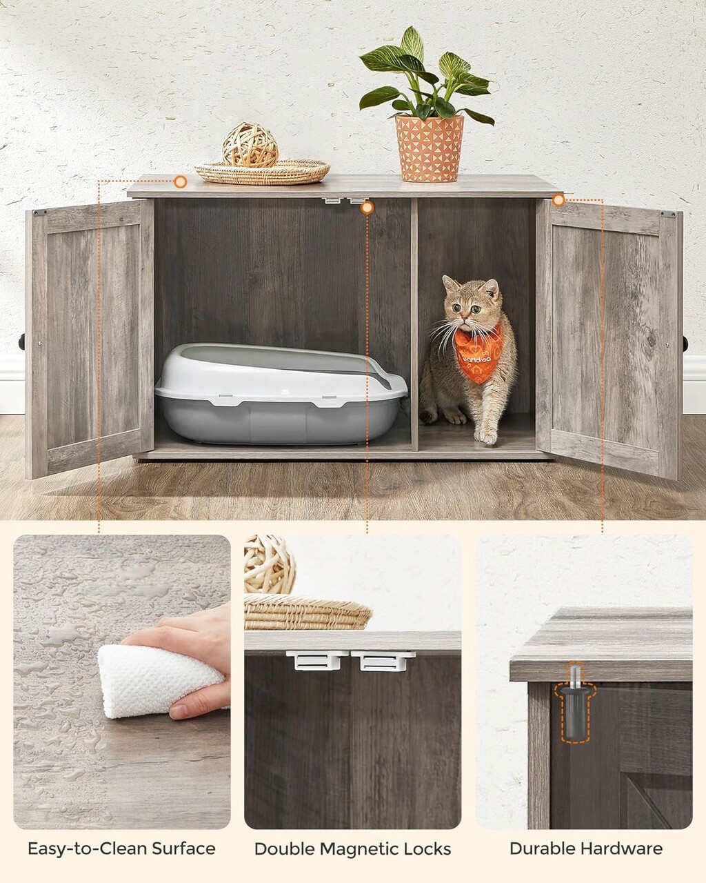 Dulap pentru litiera pisici / casa de toaleta pisici, Feandrea, 80x53x49.2 cm, PAL, gri