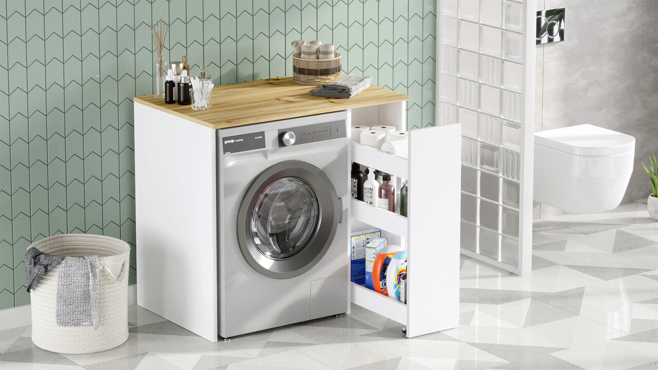 Dulap pentru masina de spalat Bedora, 93.5x60x88.3 cm, PAL, alb/natur