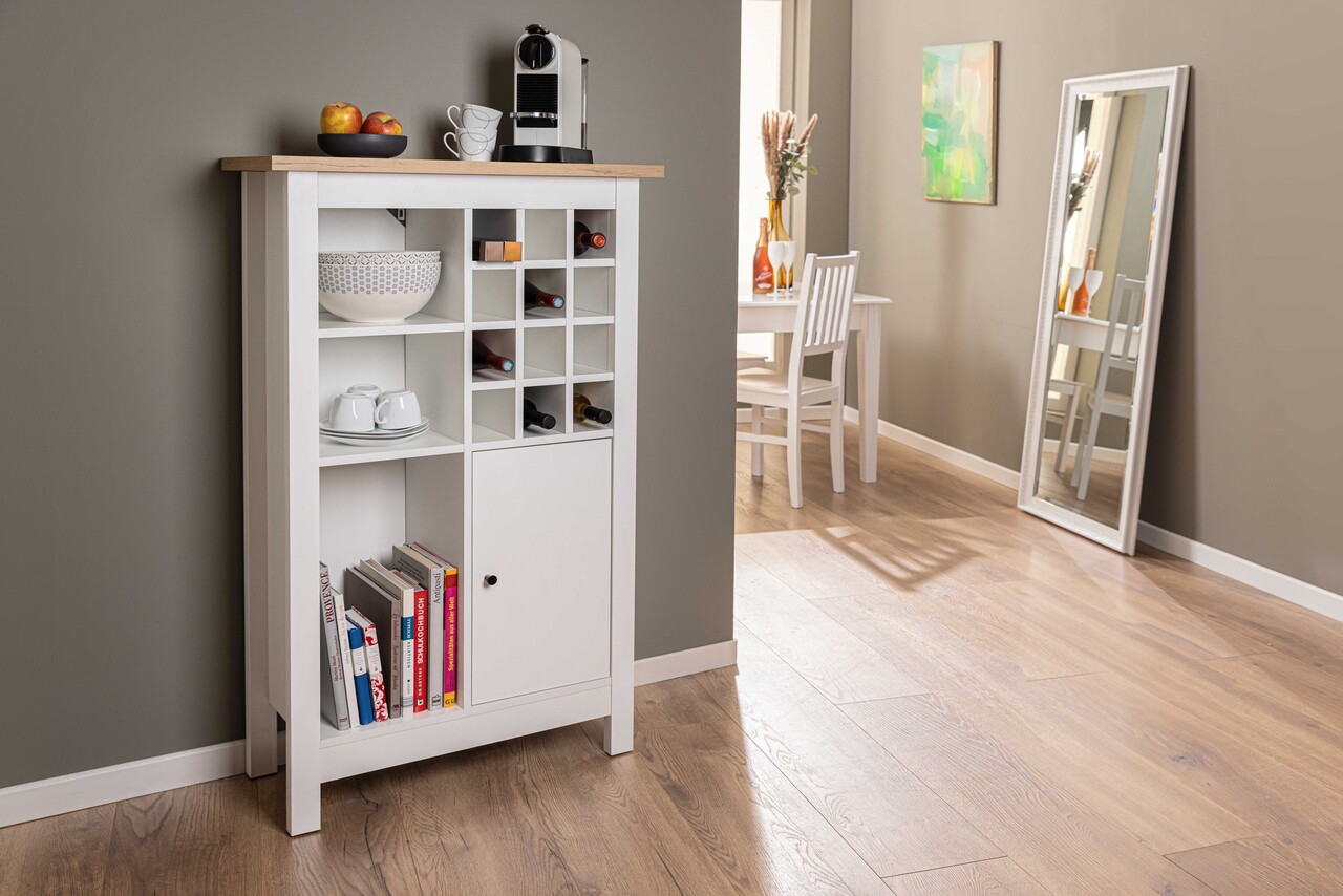 Dulap pentru sticle de vin Julina, Inter Link, 76.8x33x124.4 cm, lemn, alb/natur