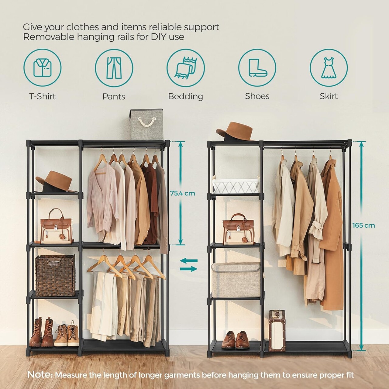 Dulap textil pentru haine, Songmics, 112x43x165 cm, material netesut/metal, max 80 kg, negru