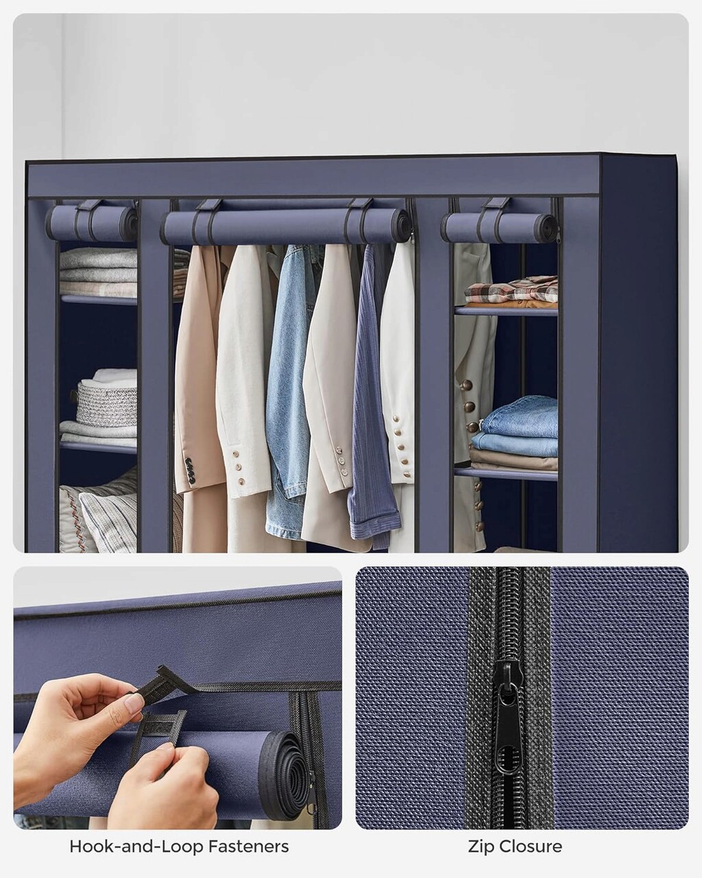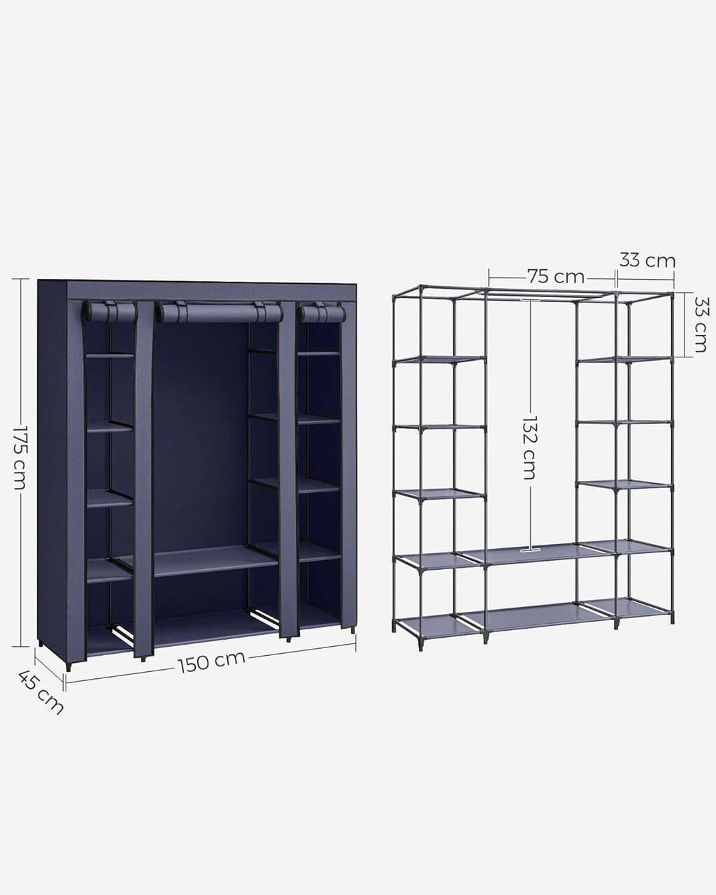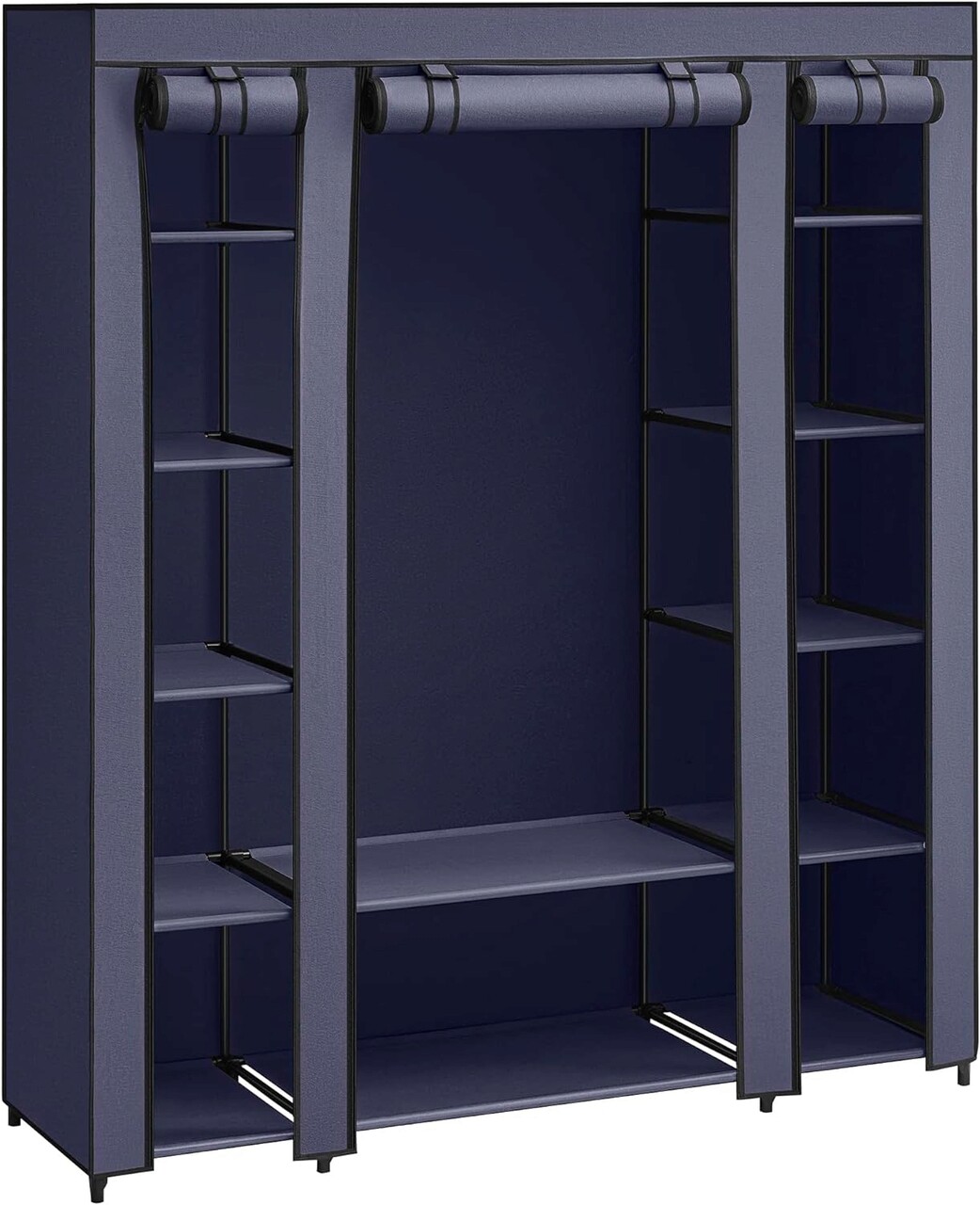 Dulap textil pentru haine Songmics, 150x45x175 cm, 12 compartimente, material netesut/otel, albastru