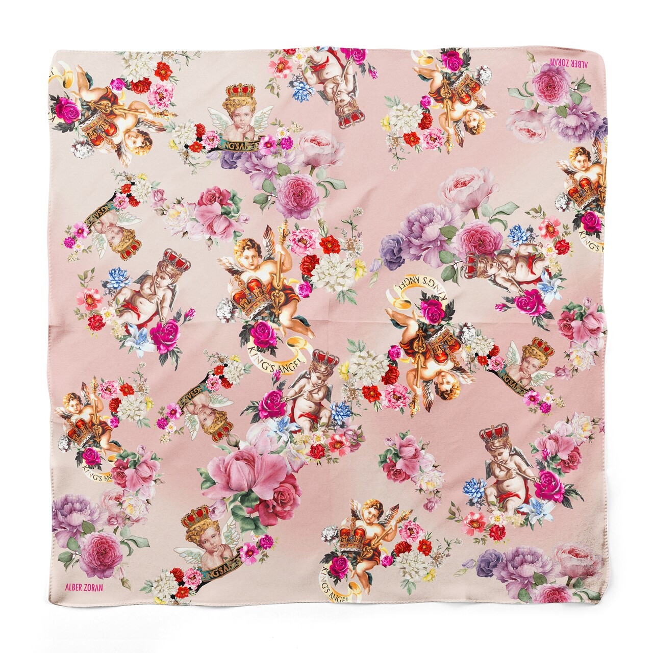 Esarfa, Alber Zoran, Flores Angelicales, 90 x 90 cm, poliester, multicolor