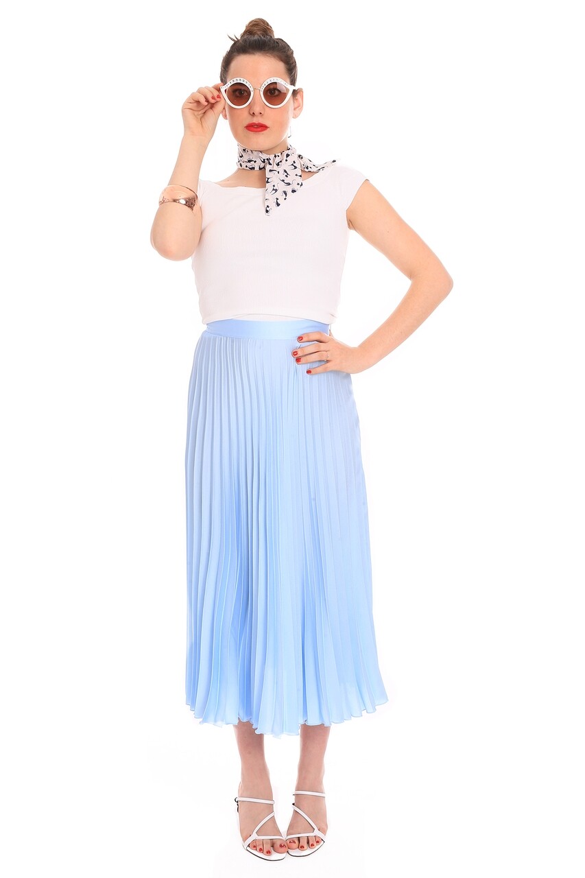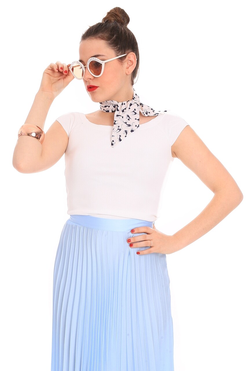Esarfa, Alber Zoran, Twilly Cat-White, 8 x 70 cm, poliester, albastru/alb