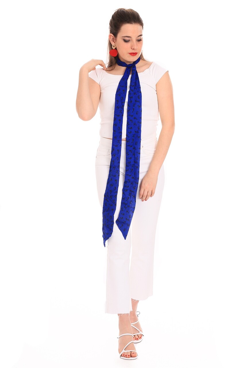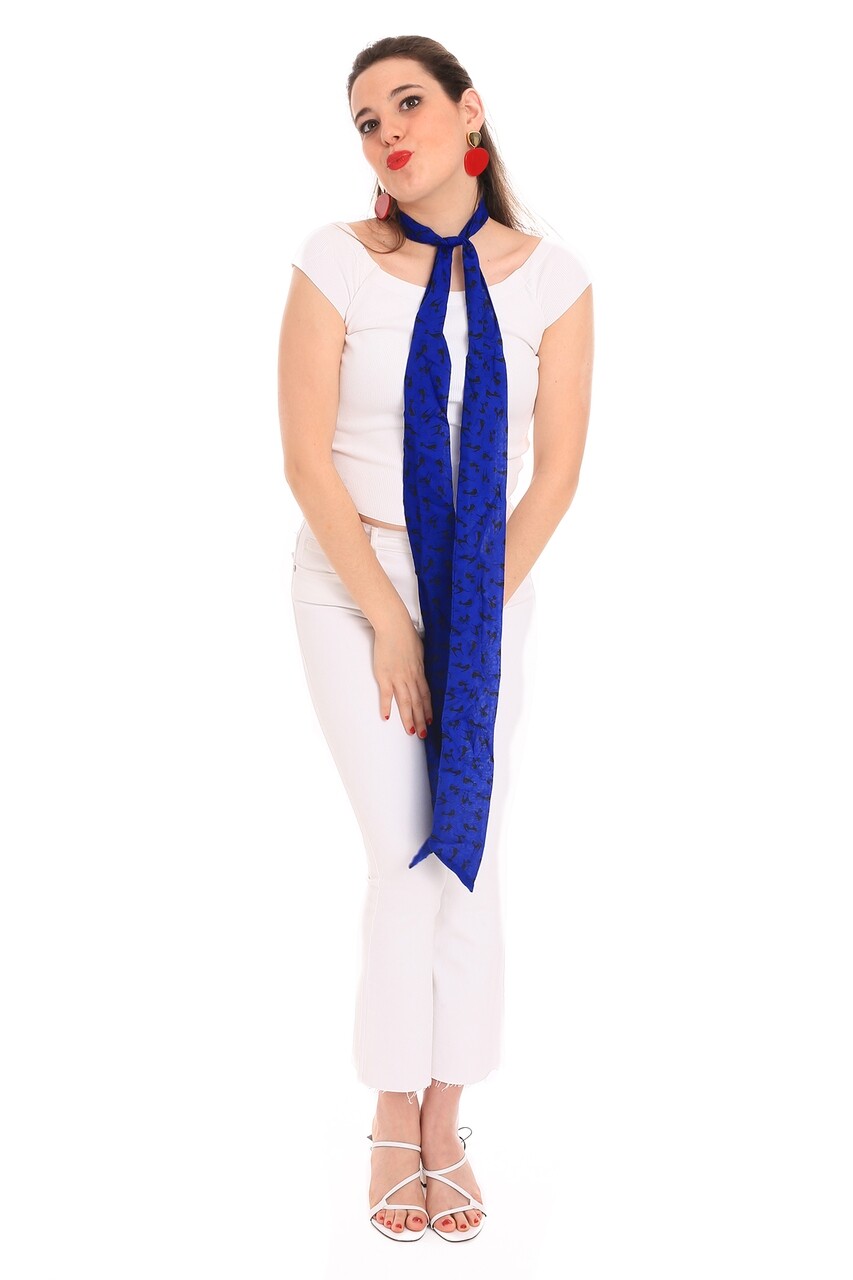 Esarfa, Alber Zoran, Twilly Meow-Electro, 8 x 220 cm, poliester, negru/albastru