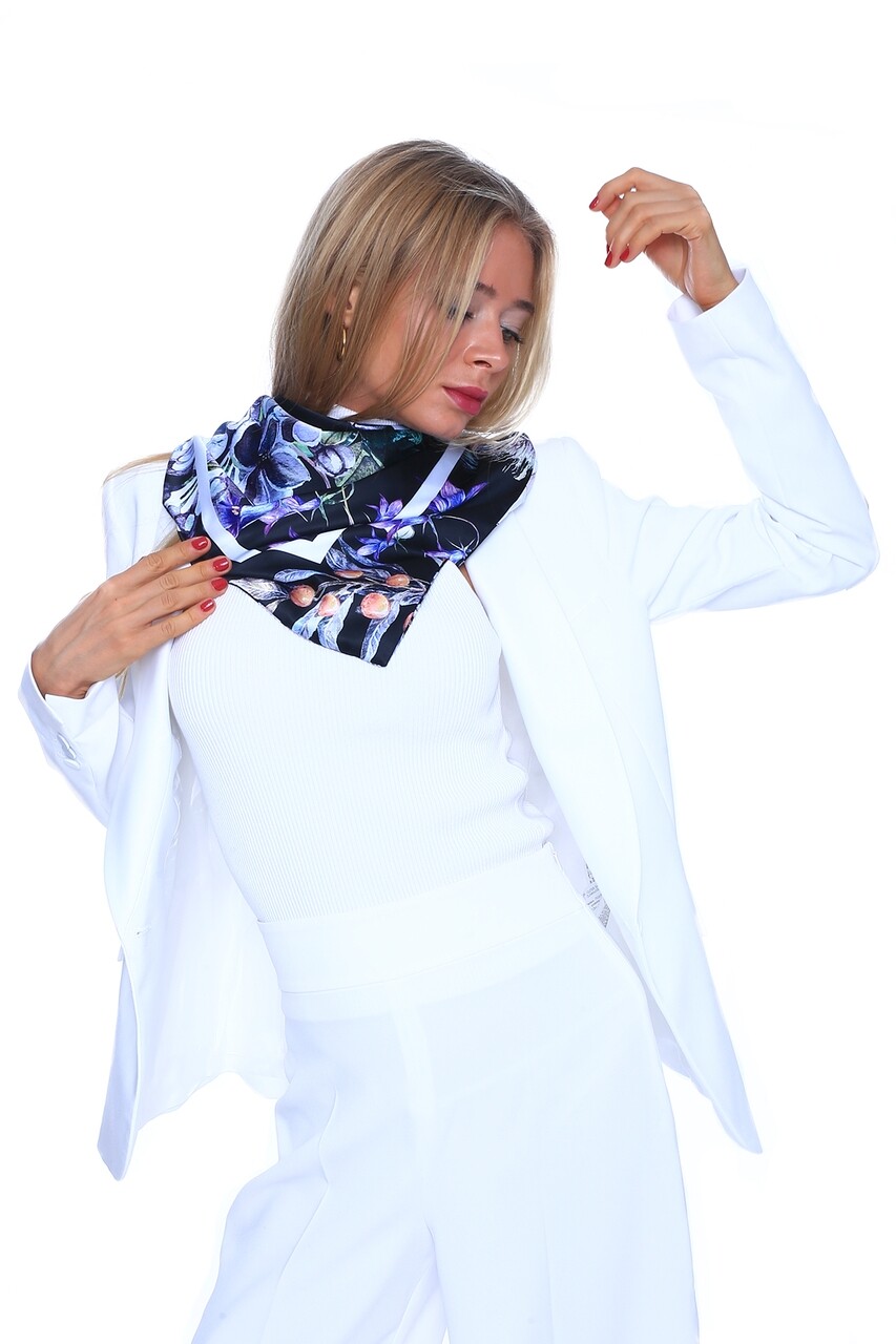 Esarfa Carre, Alber Zoran, Pyramid Bloom Bloom, 130 x 88 x 88 cm, poliester, multicolor
