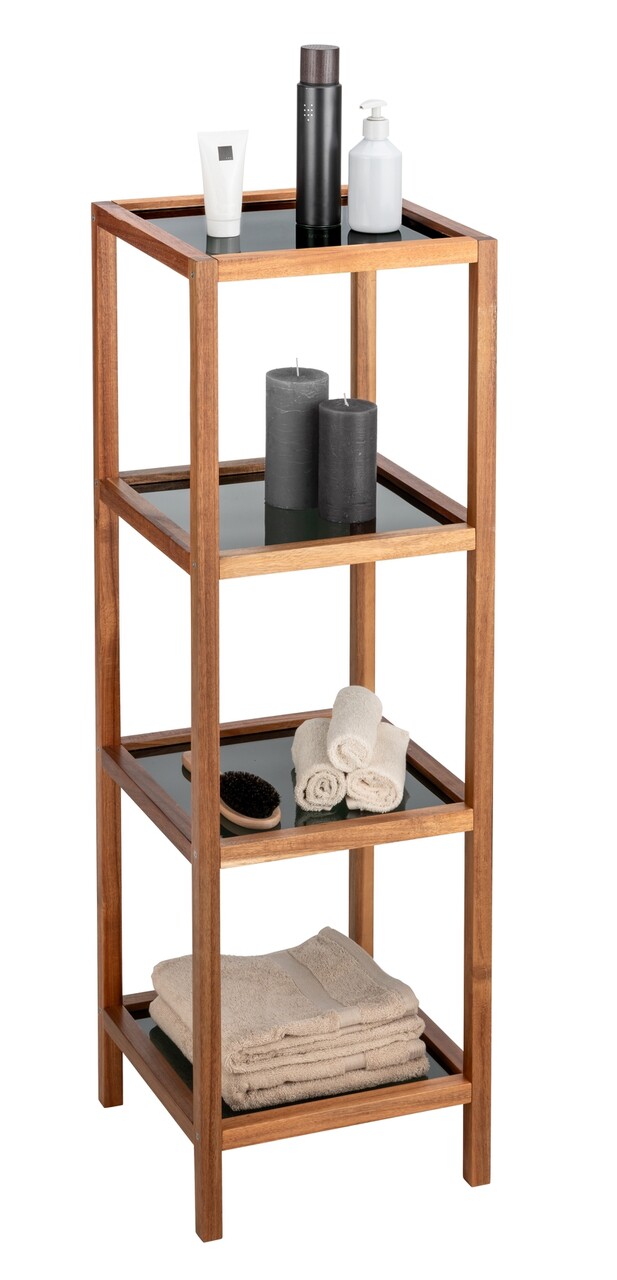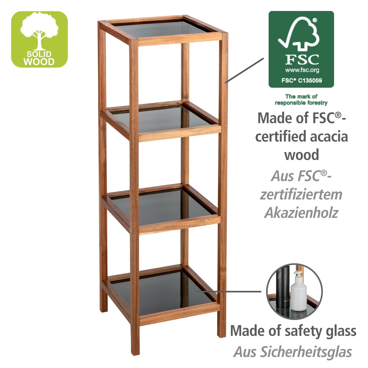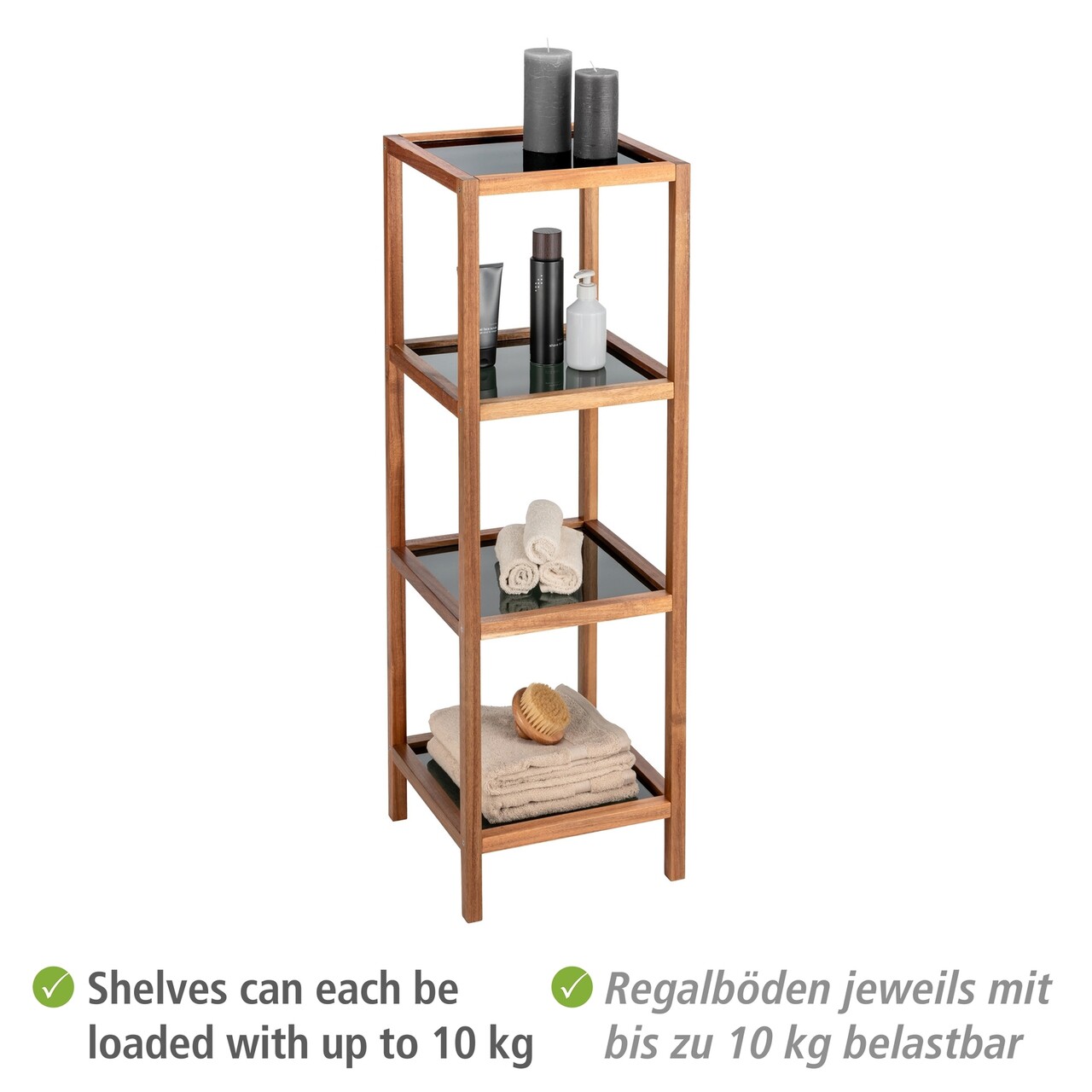 Etajera cu 4 rafturi Fondi, Wenko, 36x36x112 cm, lemn de salcam/sticla, maro/gri
