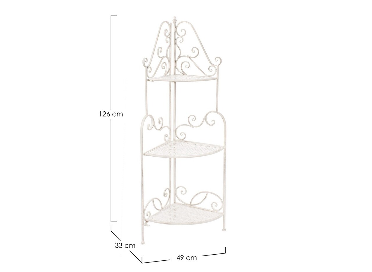 Etajera de colt Corner, Bizzotto, 49 x 33 x 126 cm, otel, alb antichizat