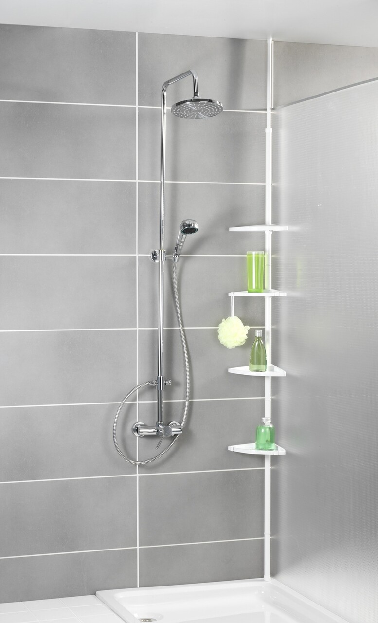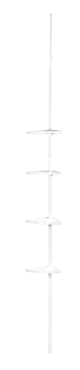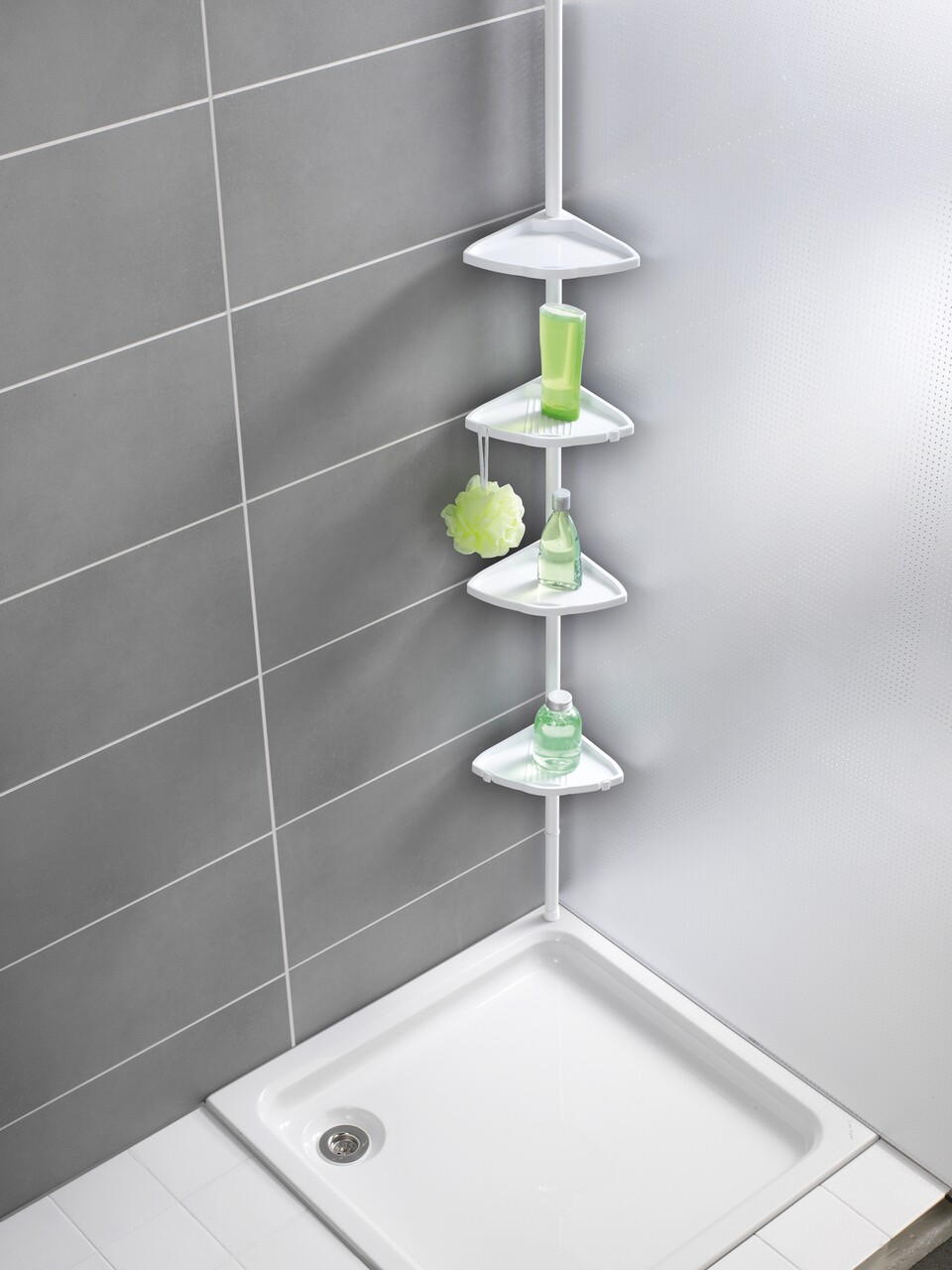 Etajera de colt extensibila pentru baie, Wenko, Compact White, 4 rafturi, 26 x 78 - 275 cm, aluminiu/plastic, alb