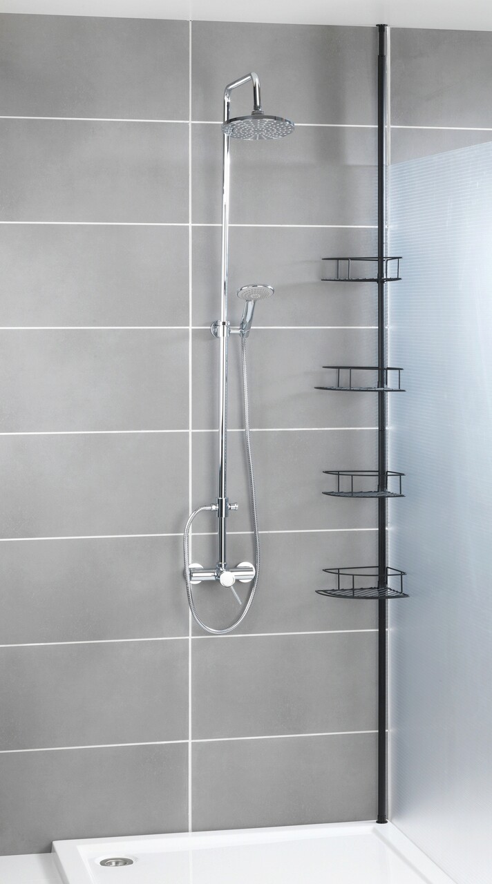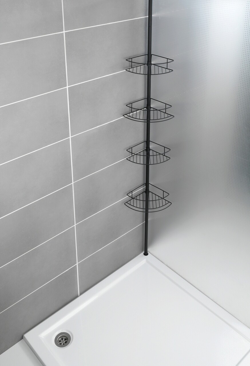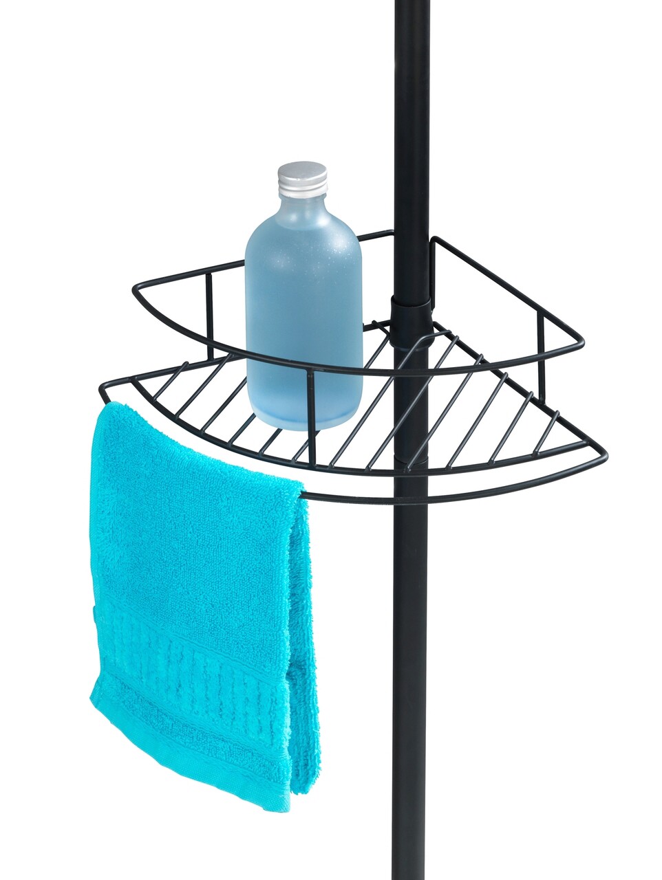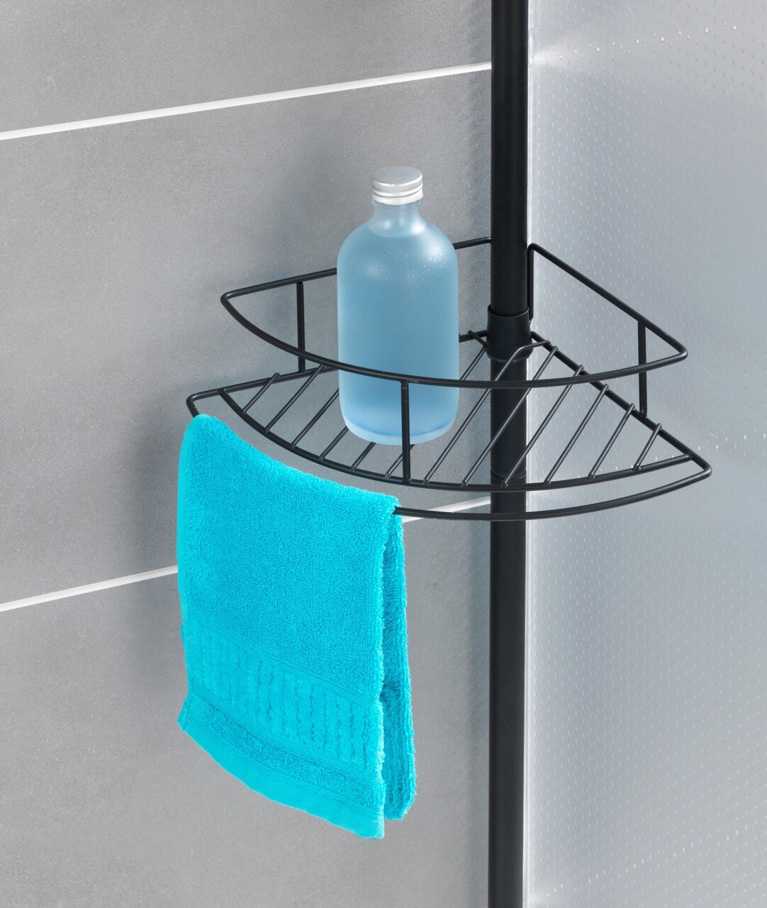 Etajera de colt extensibila, Wenko, Telescopic Dolcedo, 31 x 13.5 x 65-275 cm, inox, negru