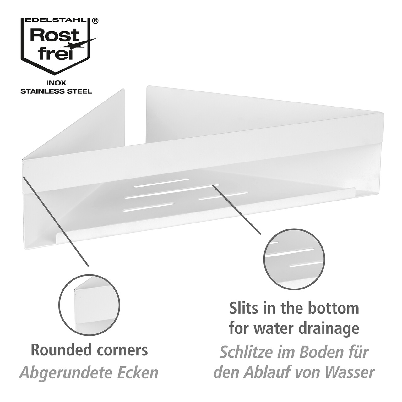 Etajera de colt pentru baie Genova, Wenko, 36x17x8 cm, inox, alb