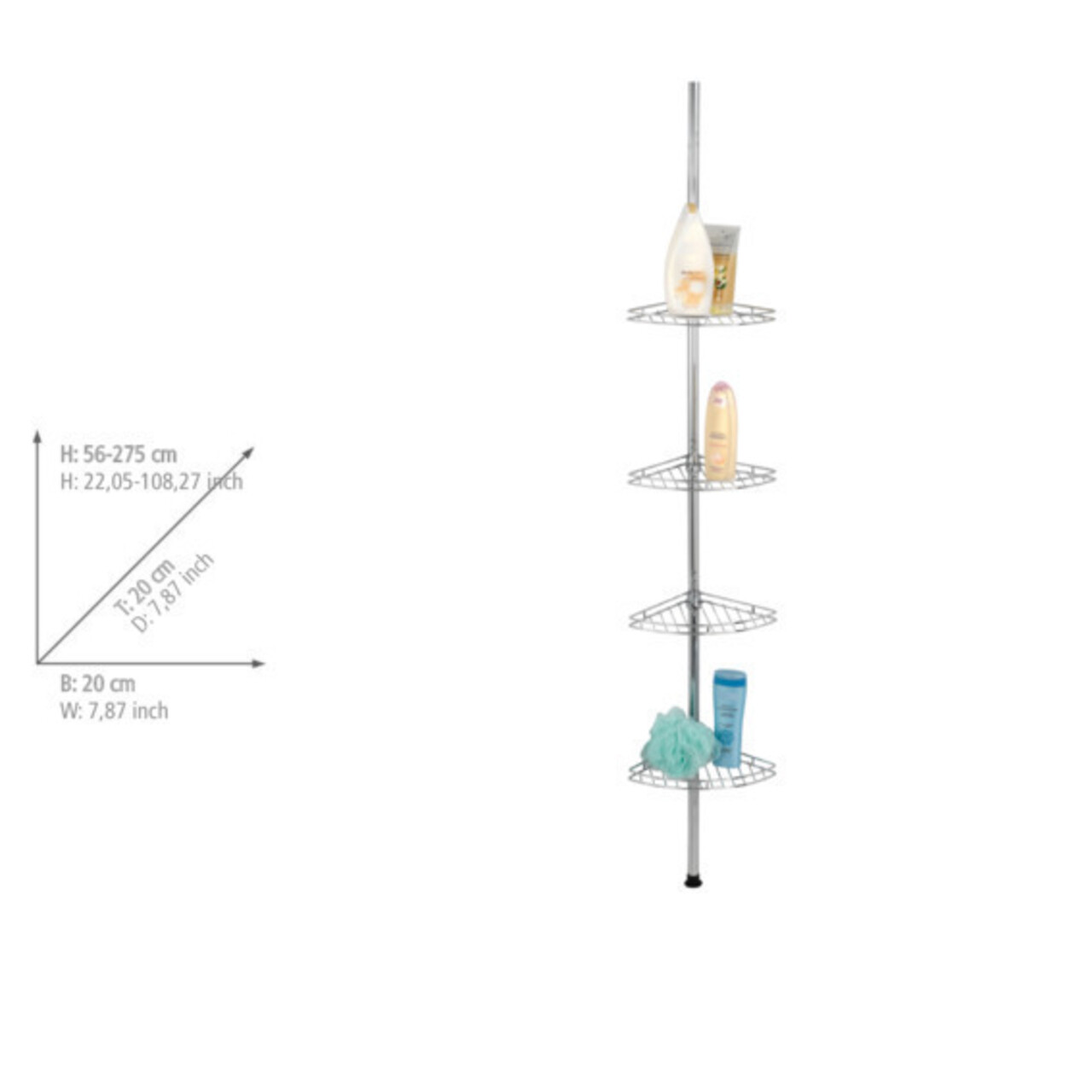 Etajeră de colț pentru baie Telescopic, Wenko, 20x20x56-275 cm, inox, argintiu lucios