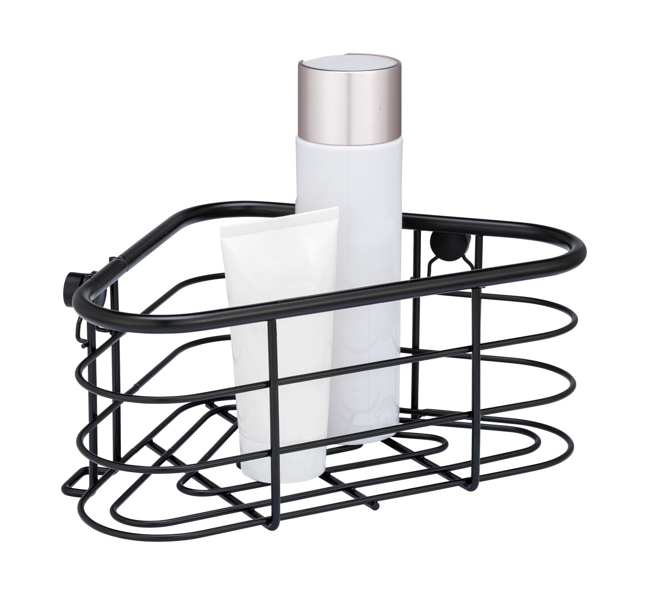 Etajera de colt pentru baie, Wenko, Trestina, 25 x 10.5 x 16.5 cm, inox, negru