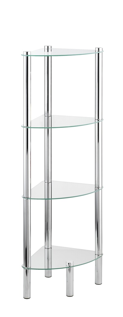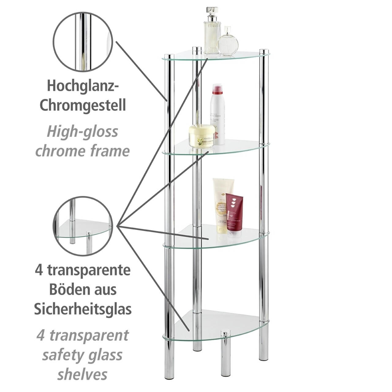 Etajera de colt pentru baie Yago, Wenko, 30x30x104 cm, inox/sticla, argintiu lucios