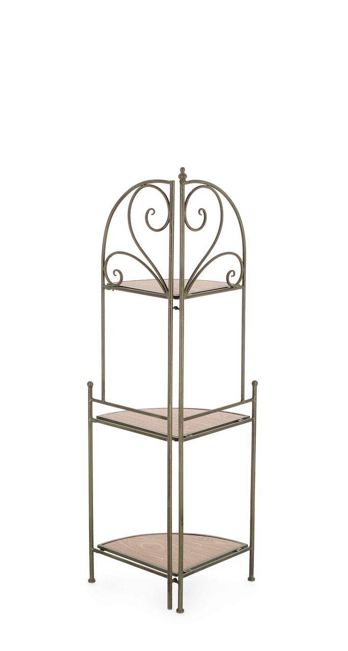 Etajera de colt pliabila Guenda, Bizzotto, 49x33x126 cm, otel/MDF, verde inchis