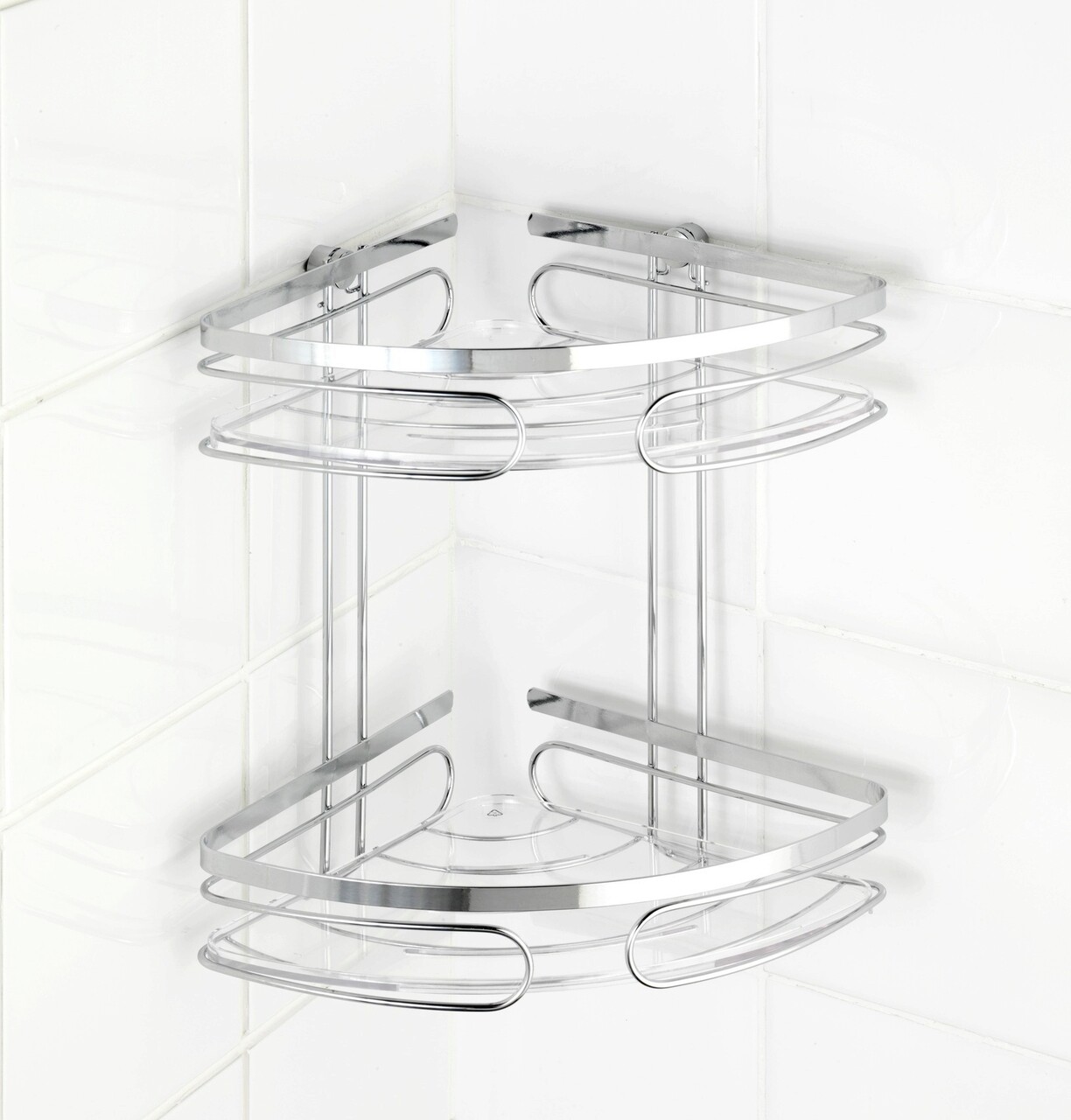 Etajera de colt, Wenko, Premium Rack, 26.5 x 27.5 x 19 cm, inox, gri