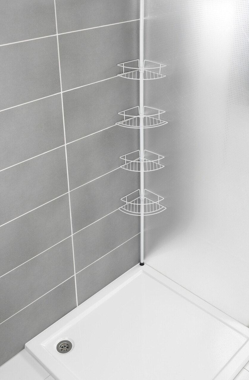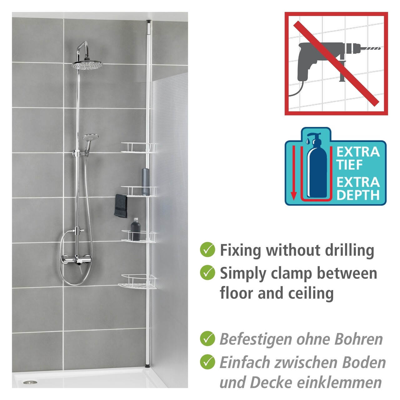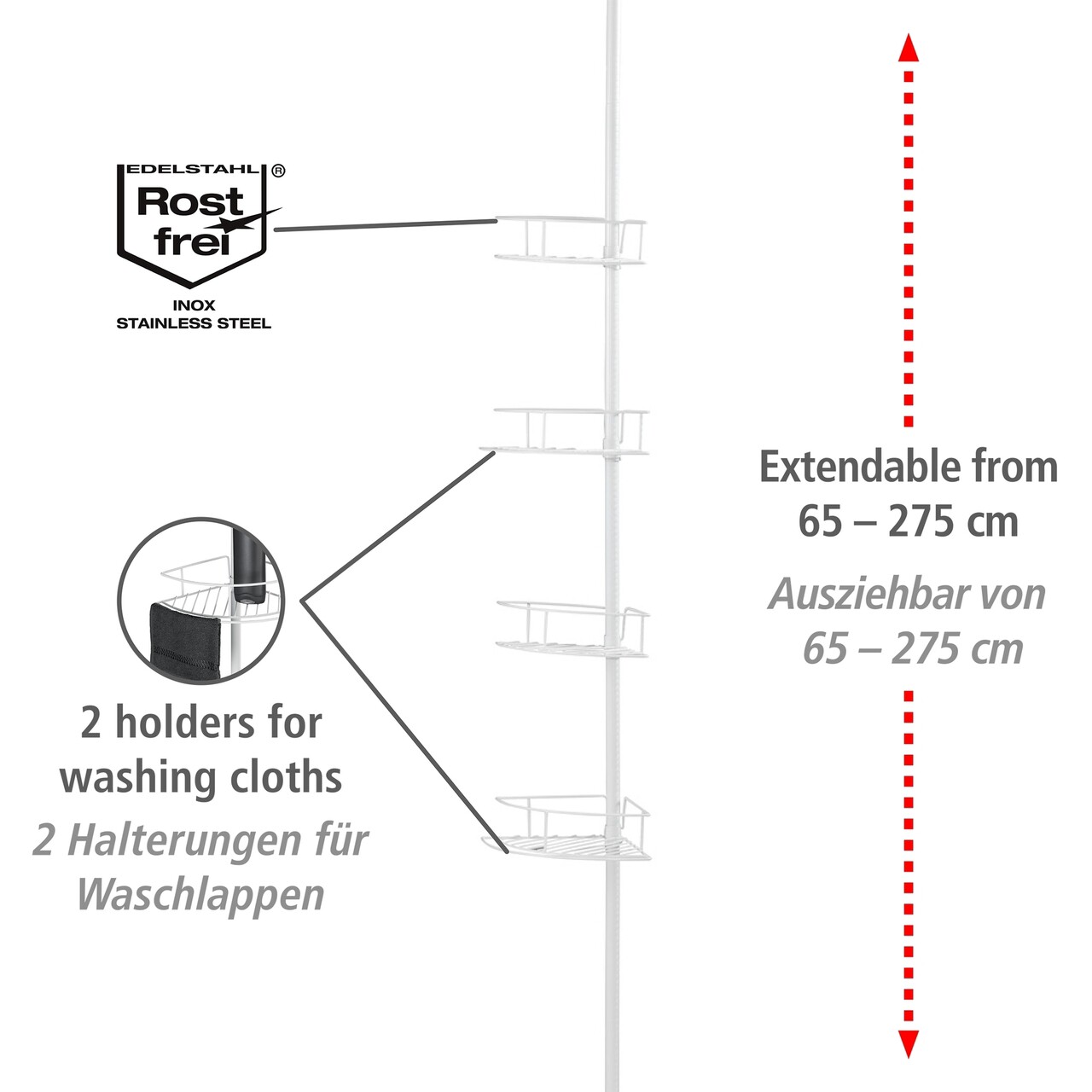 Etajera extensibila pentru dus Dolcedo, Wenko, 31x23x65-275 cm, inox, alb