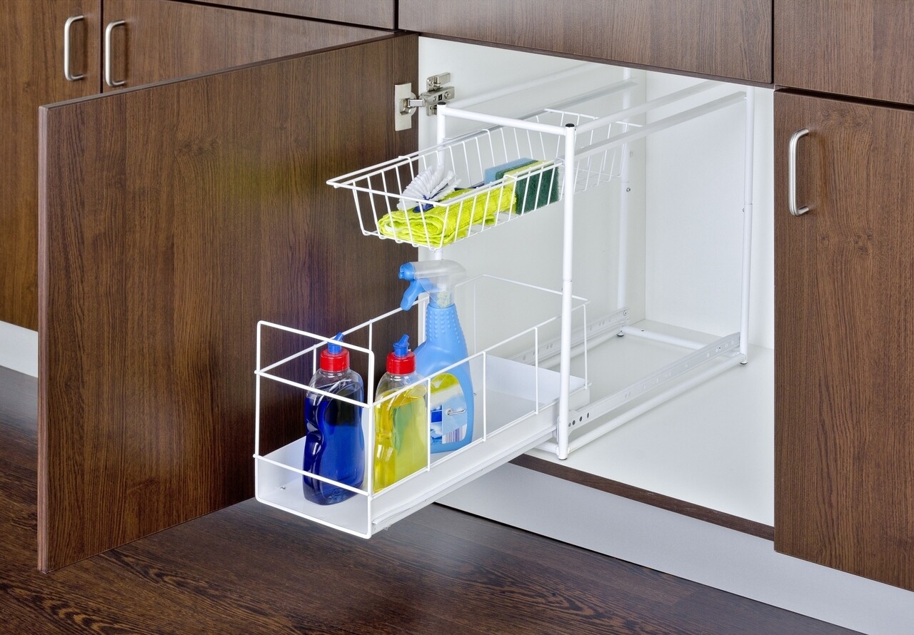 Datorita dimensiunilor compacte, suportul poate fi montat in dulapurile din bucatarie si baie pentru economisirea spatiului de depozitare.