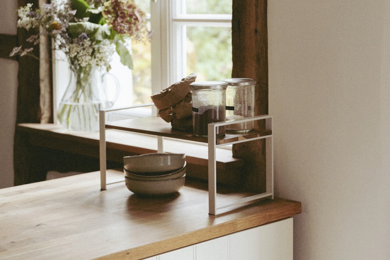 Economiseste spatiu cu etajera de bucatarie Louisa de la WENKO. Poate fi amplasata direct pe blatul din bucatarie si asigura mai multa organizare si depozitare atractiva. Produsul necesita asamblare.
