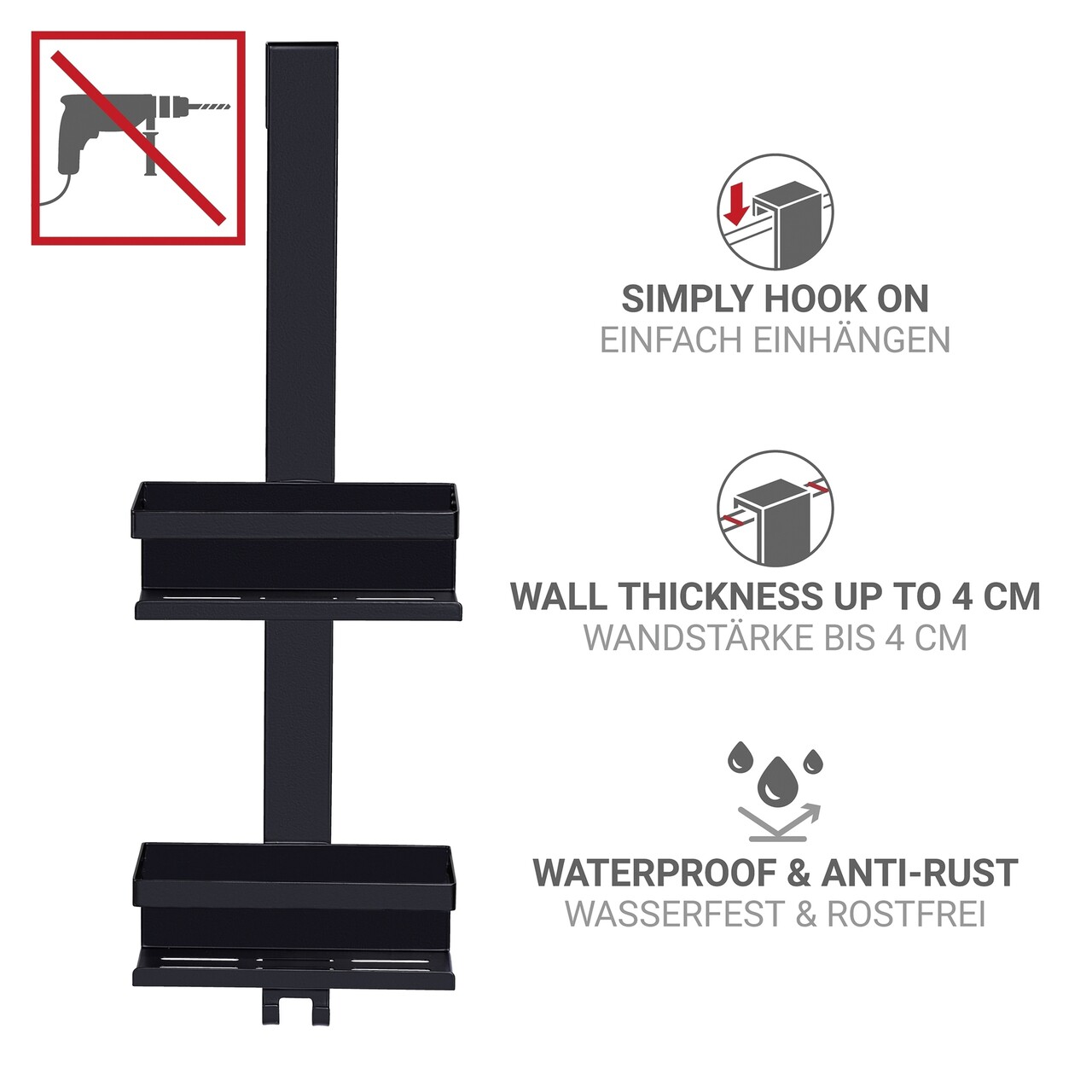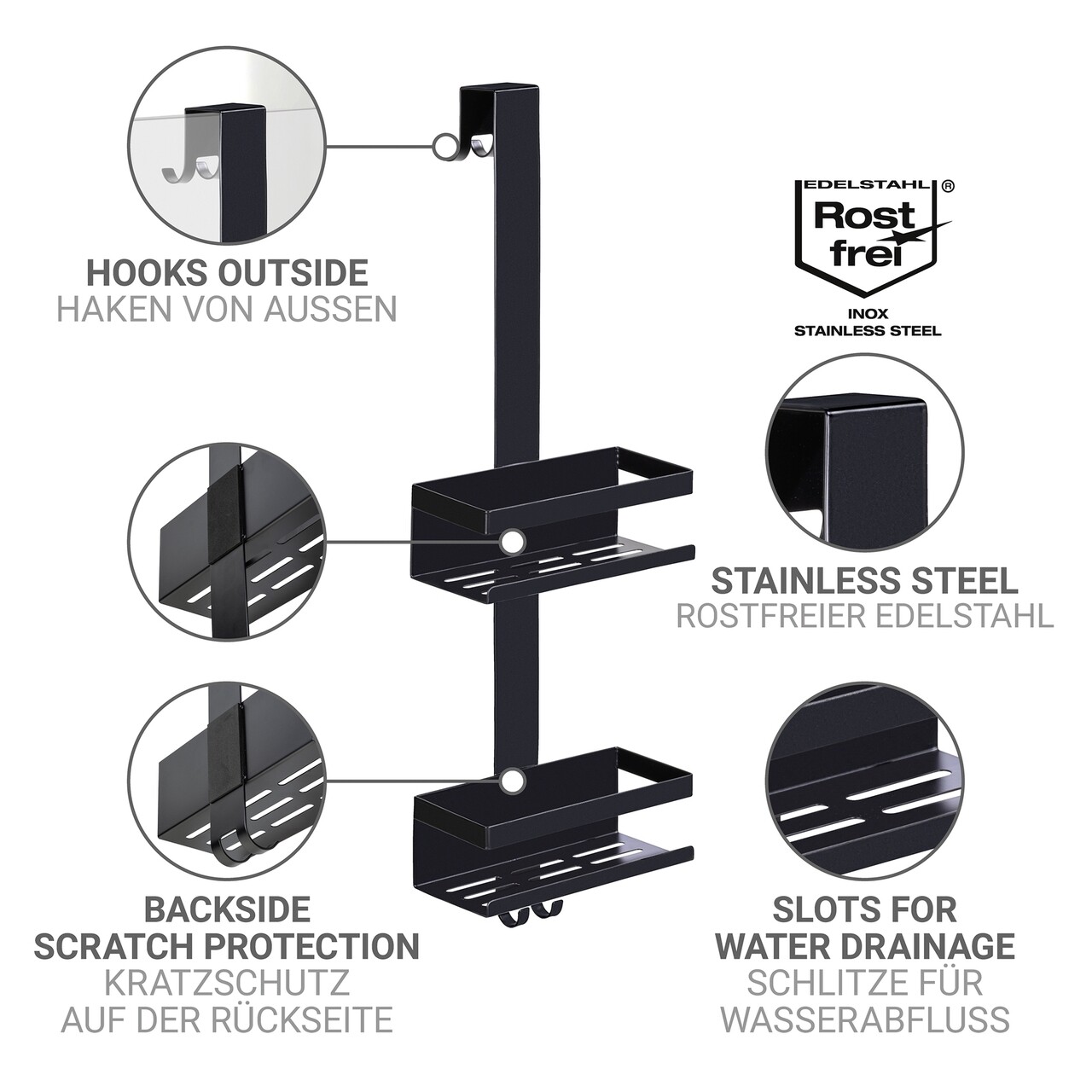 Etajera suspendata pentru baie cu 2 rafturi Bribano Duo, Wenko, 23x18x71 cm, inox, negru