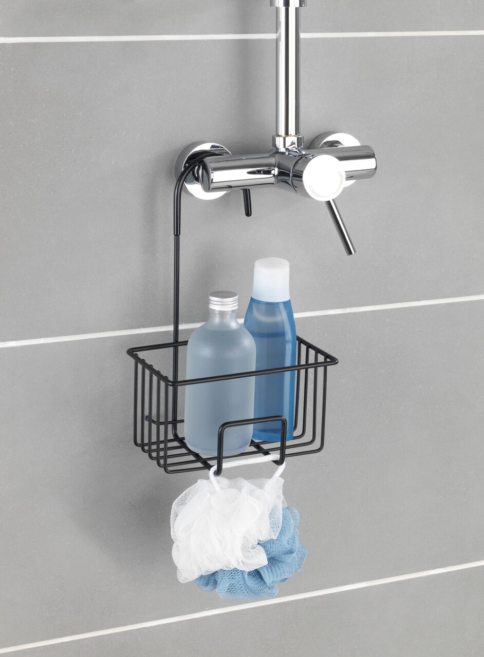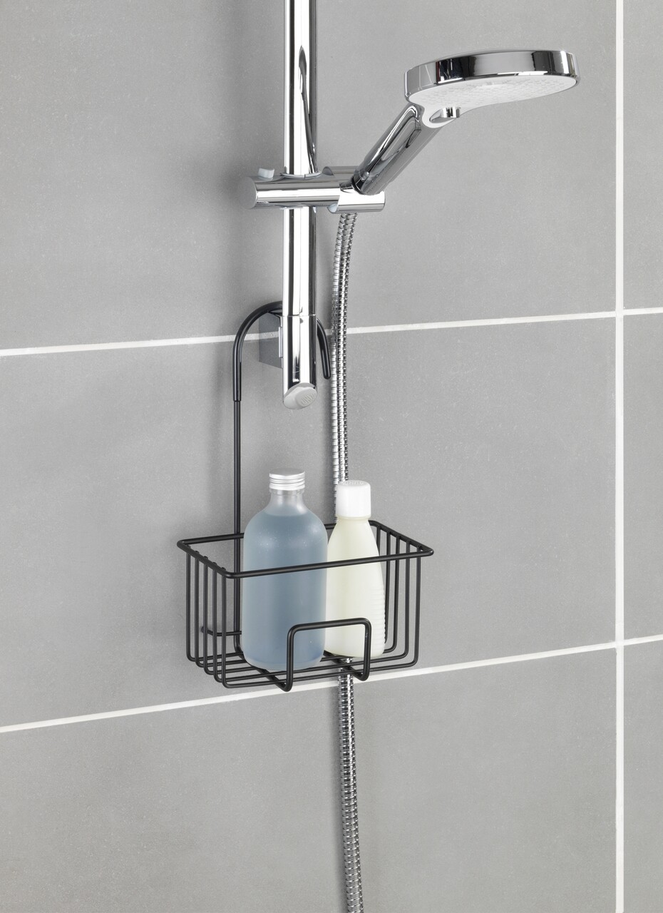 Etajera suspendata pentru baie Milito, Wenko, 18x13x28.5 cm, inox/PET, negru