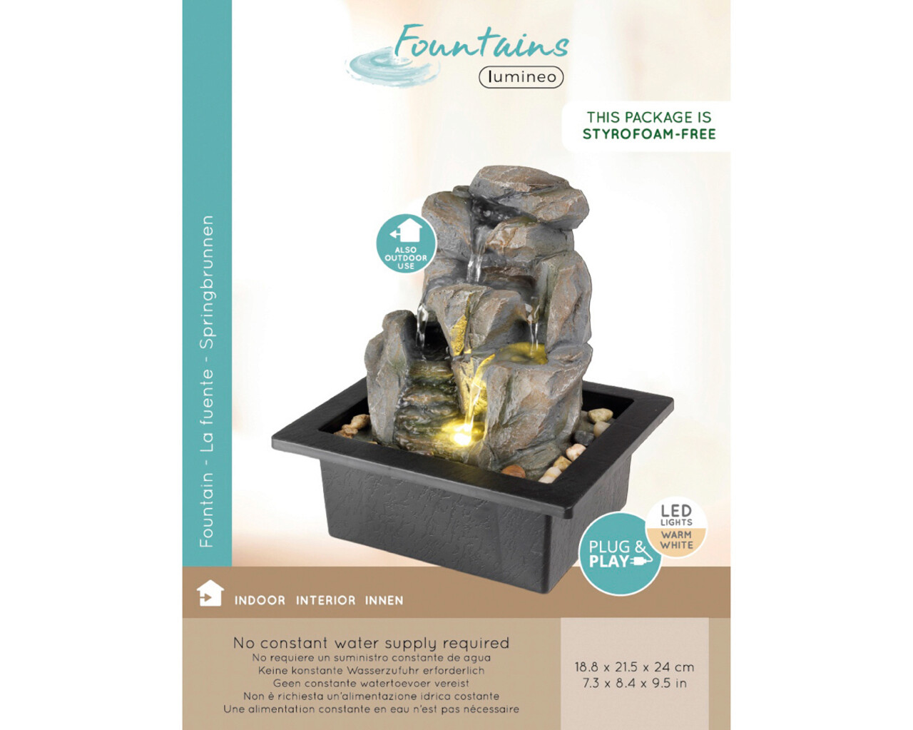 Fantana decorativa cu iluminare LED interior/exterior Loki, Lumineo, 18.8 x 21.5 x 24 cm, IP44, polirasina, gri