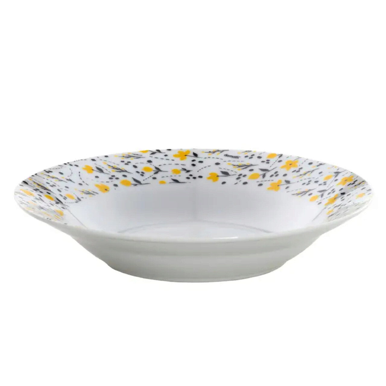 Farfurie adanca din portelan 20.5 cm, Domotti Amarillo, model floral.