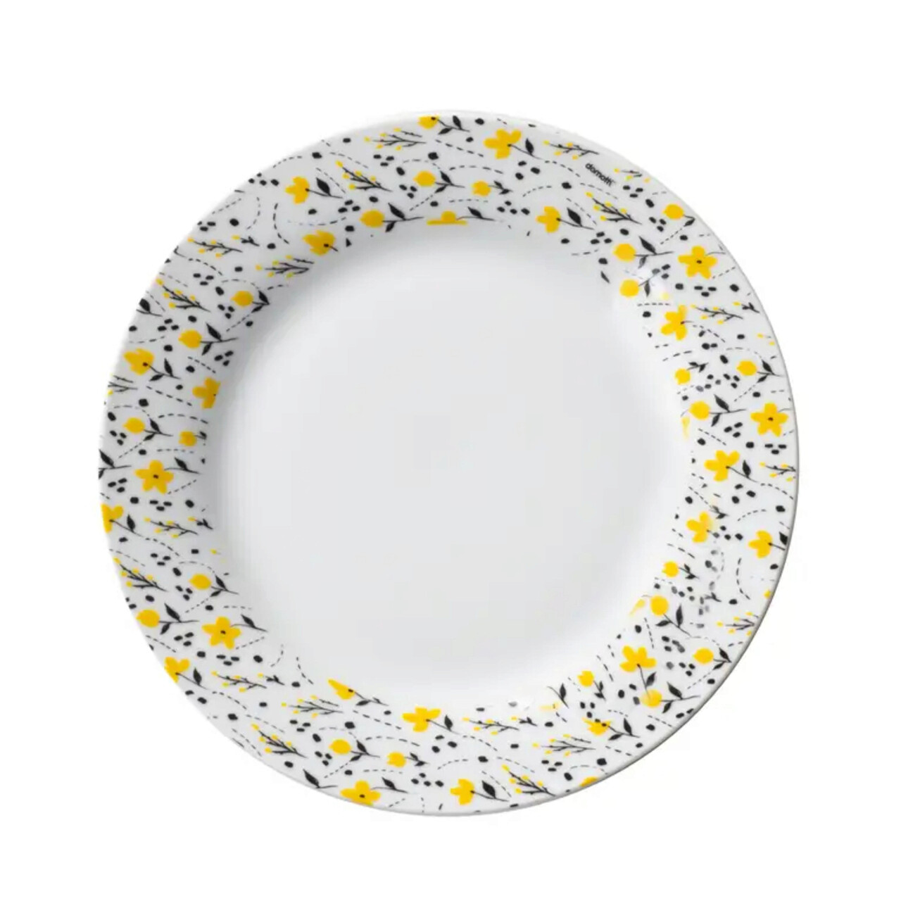 Colectia Amarillo, Domotti este confectionata din portelan alb cu decor floral in galben si negru. Forma rotunda clasica si decorul de primavara vor fi perfecte pentru orice interior. Negrul atemporal si galbenul vesel este combinatia perfecta de culori pentru primavara si vara. Portelanul Amarillo va fi un plus interesant pentru sala de mese. Toate produsele se pot spala in masina de spalat vase si sunt compatibile pentru cuptorul cu microunde.