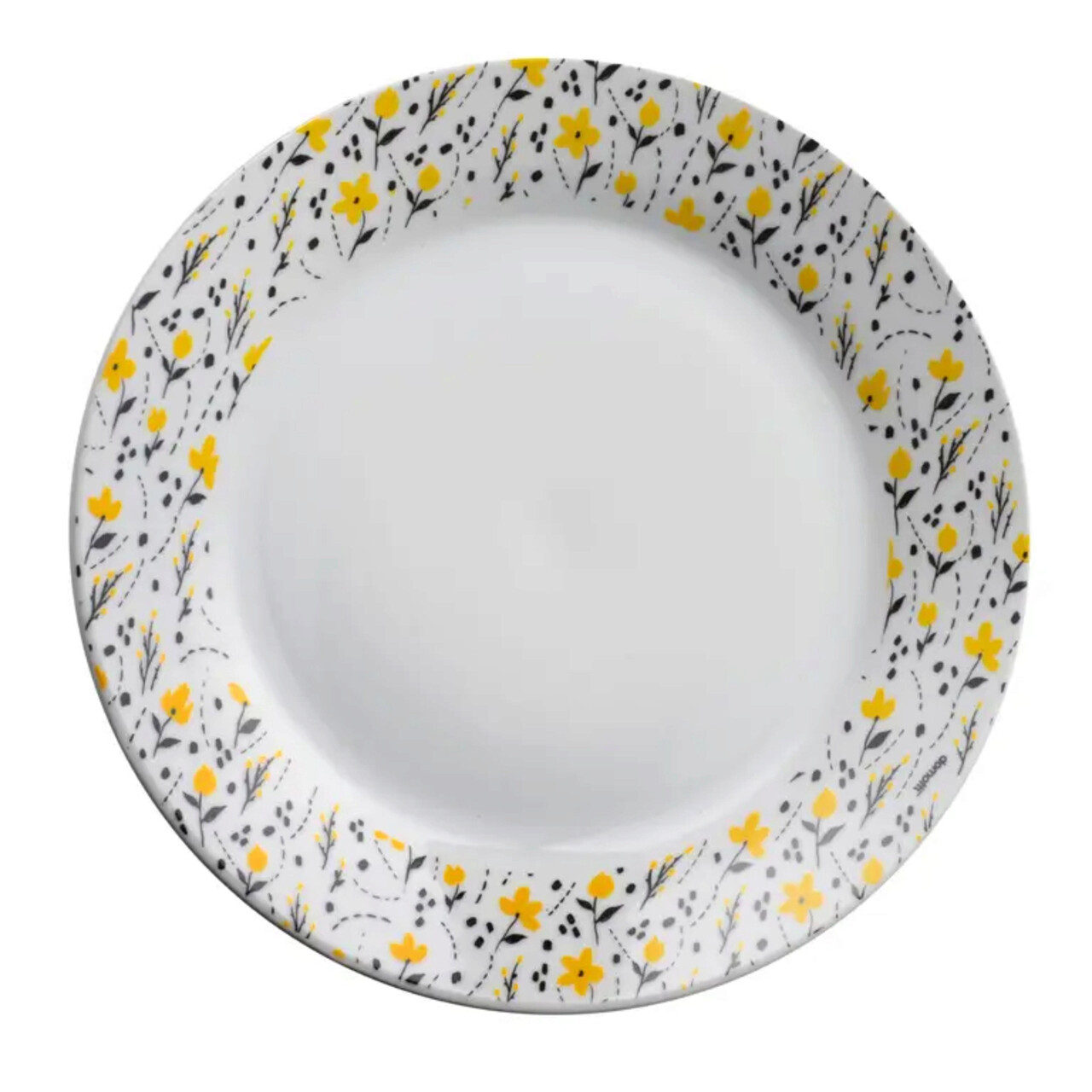 Farfurie plata din portelan 23 cm, Domotti Amarillo, model floral.