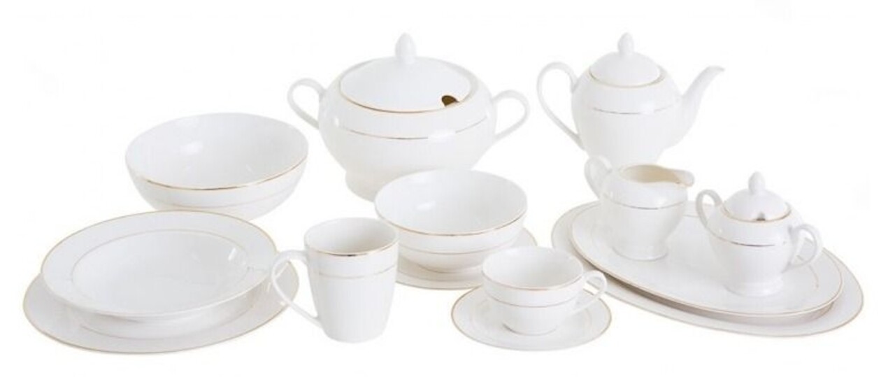 O linie de portelan exceptional de eleganta, decorata cu linii aurii delicate. Forma clasica si decoratia subtila o fac perfecta atat pentru interioarele traditionale, cat si pentru cele moderne. Portelanul New Bone China de inalta calitate, cu o nuanta alb-crem, este rezistent si arata foarte exclusivist.