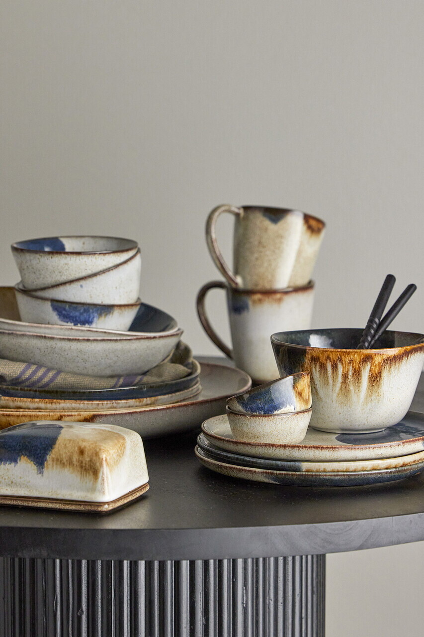 Farfurie intinsa, Bloomingville, Jules, 28.5x2 cm, ceramica, albastru