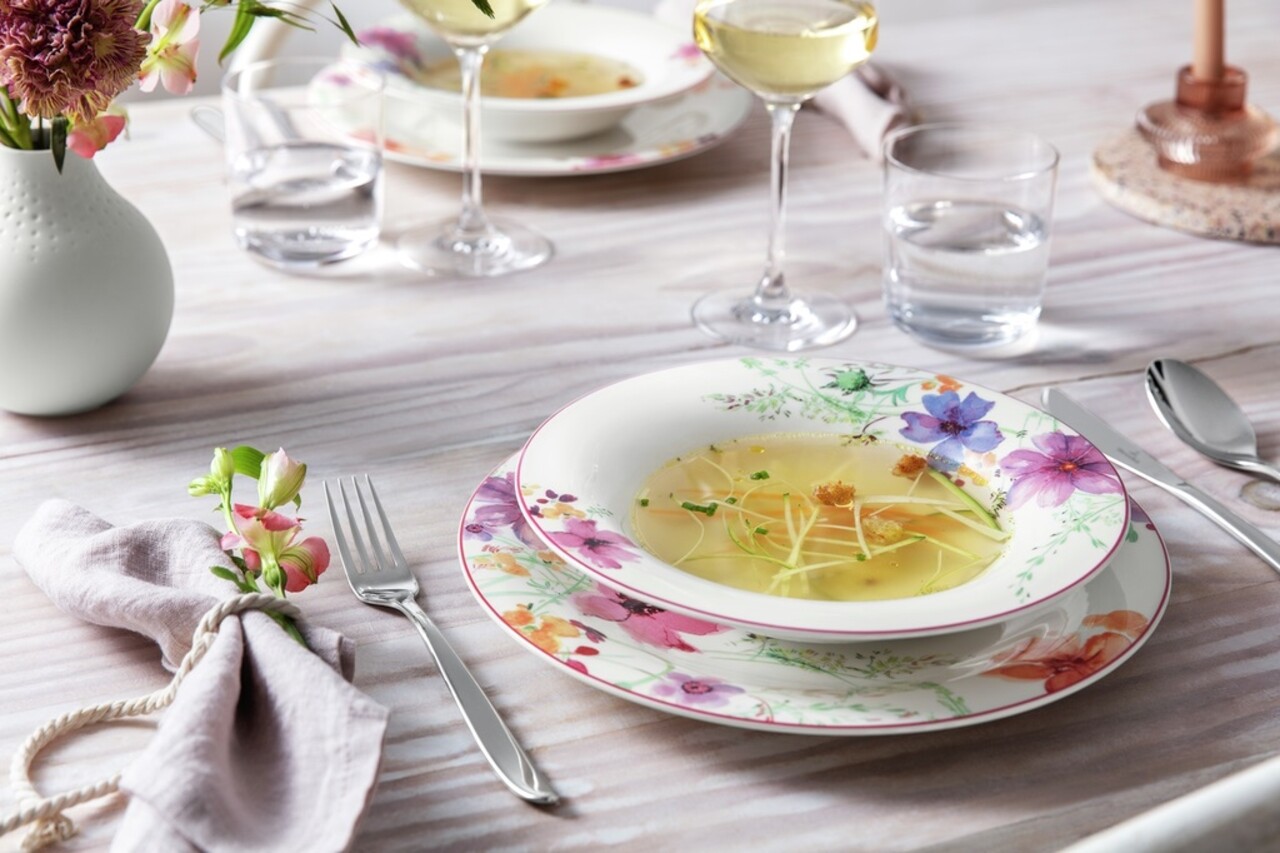Colectia Mariefleur Basic de la Villeroy & Boch prezinta motive florale de primavara in culori indraznete si vibrante. Inspirate de gradinile lui Monet din Giverny, formele elegante si curbate ale pieselor din portelan Premium vor atrage toate privirile invitatilor.