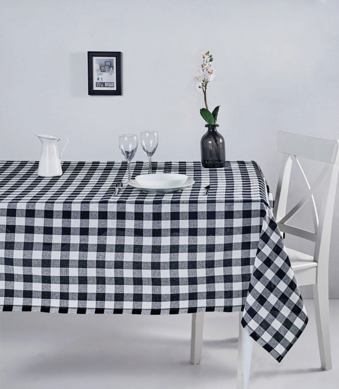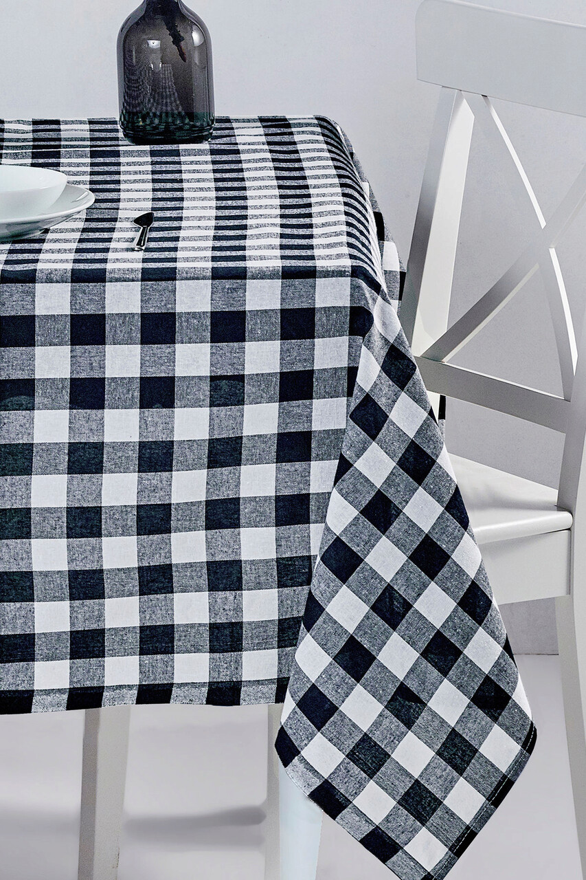 Fata de masa, Hermia, 198DCH1118, Se poate spala la masina pana la maximum 30-40 grade Celsius, Alb/Negru