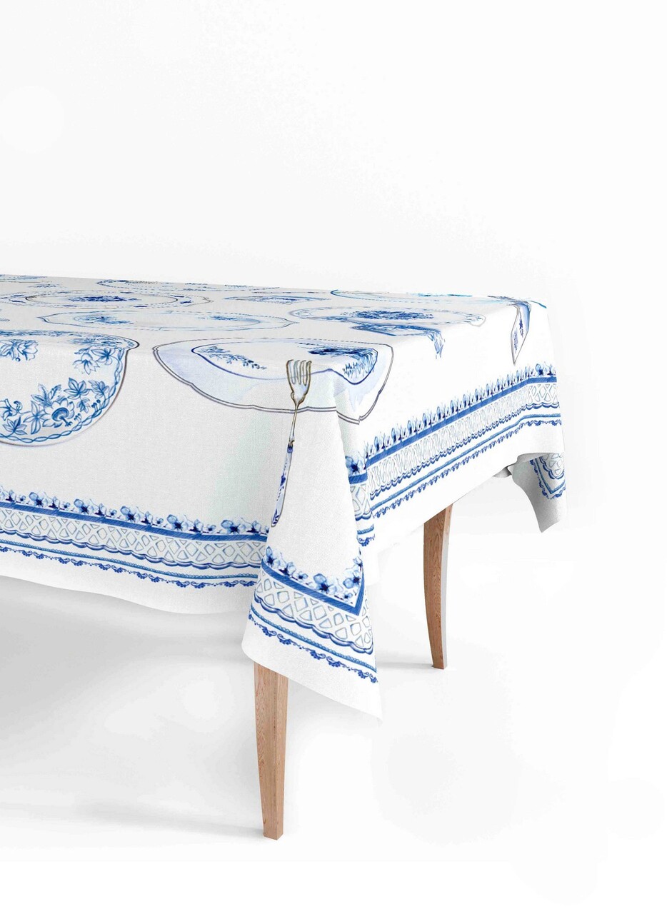 Fata de masa, Mia, 742TMA7769, Poliester, Albastru/Alb