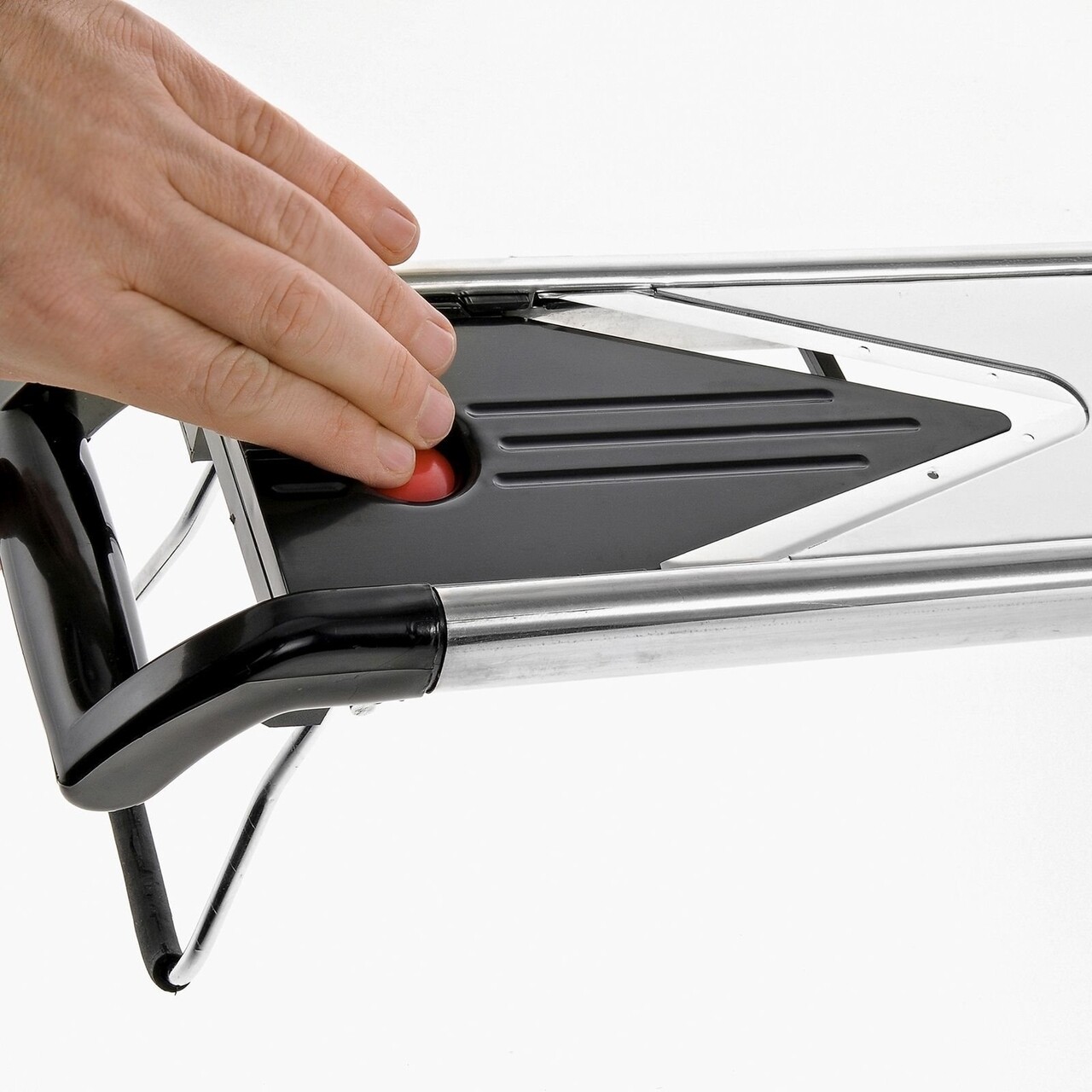 Prezinta 5 accesorii pentru feliere diferita si maner detasabil pentru alimente (o mai buna ergonomie si protectie). Are picioare anti-derapante pentru o cat mai buna mentinere pe suport.