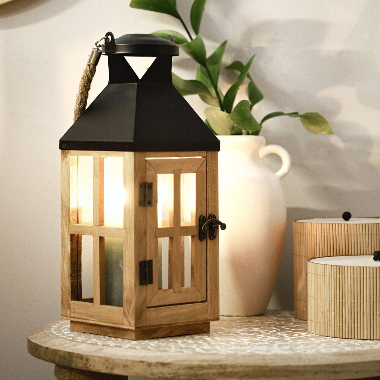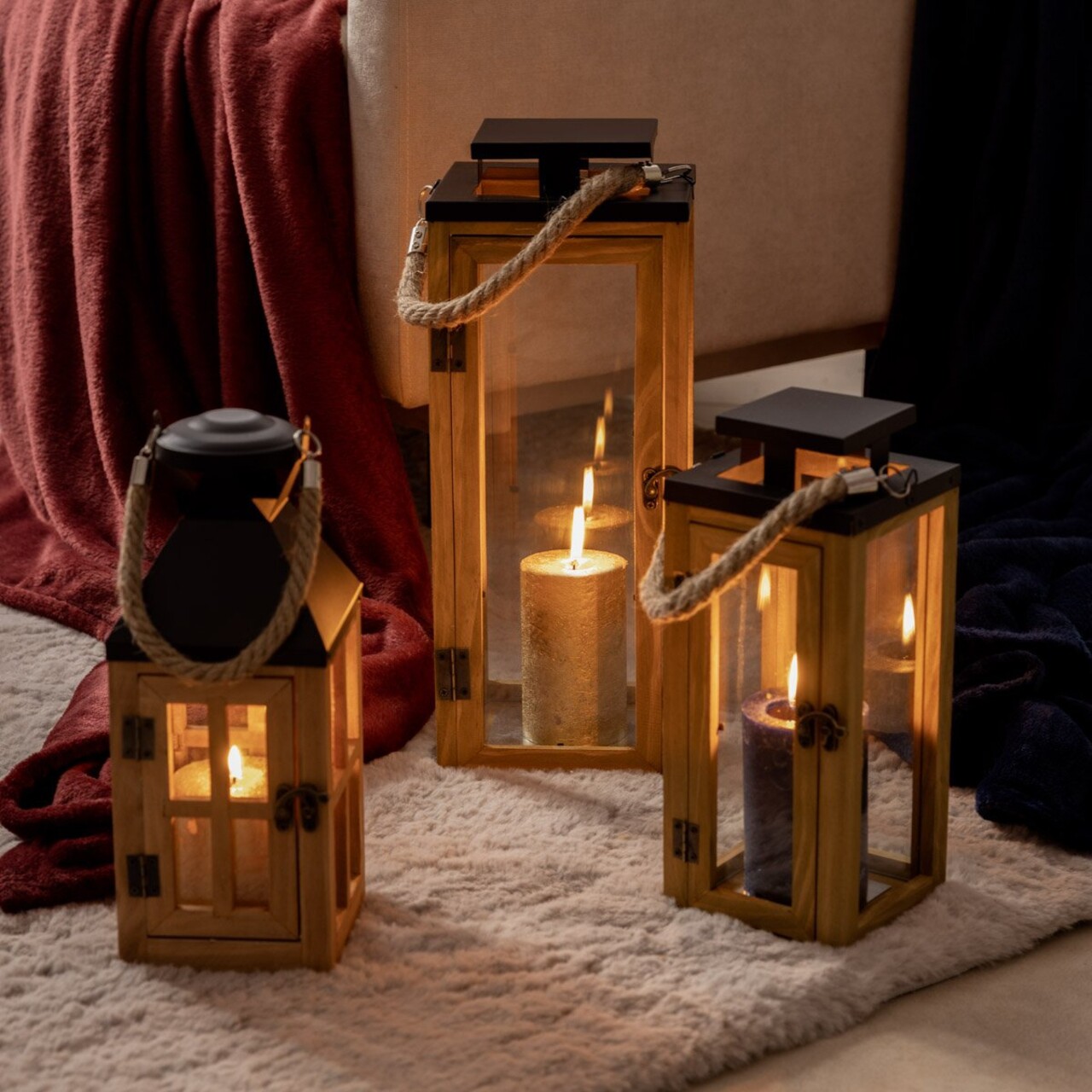 Felinar Burel, Homla, 12x12x31 cm, lemn/sticla, natur/negru