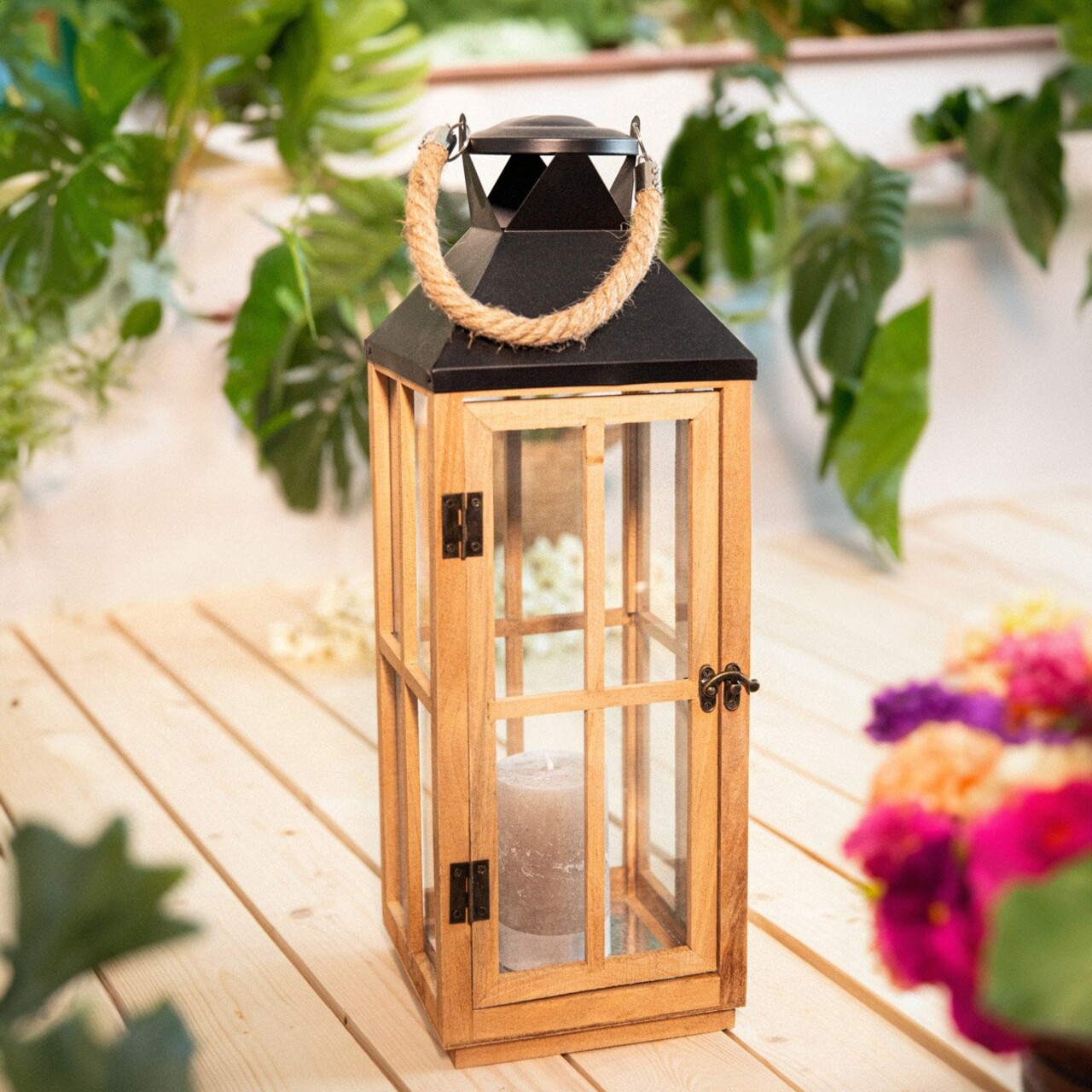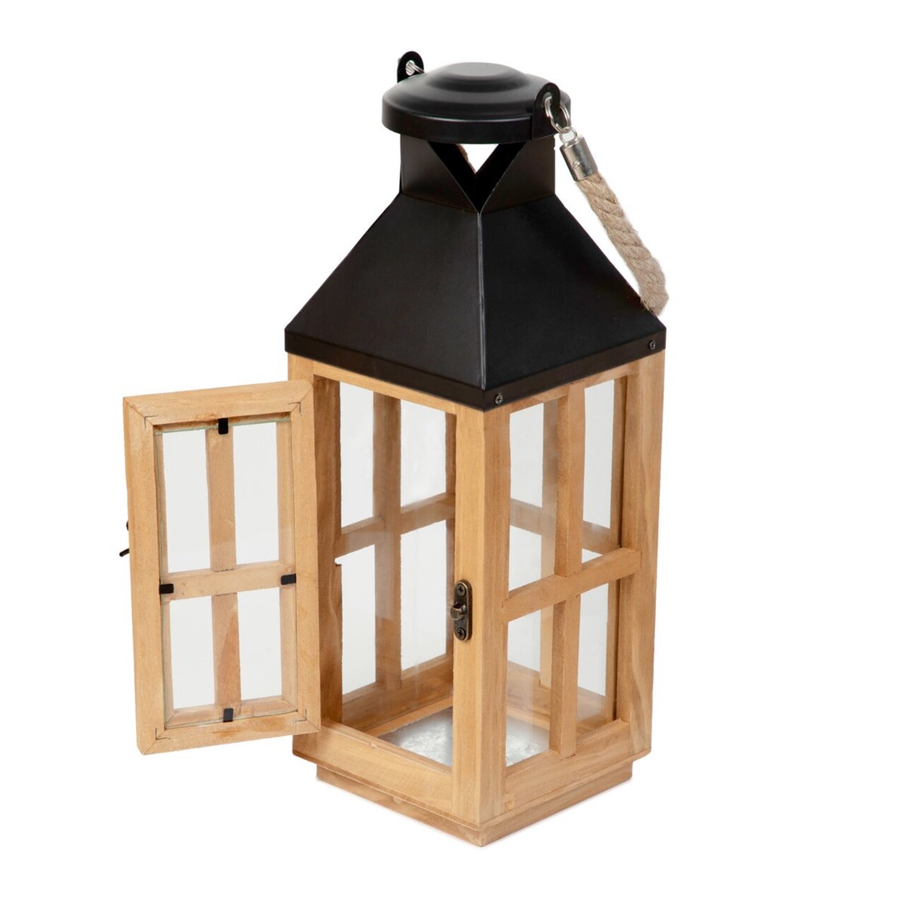 Felinar Burel, Homla, 18x18x51 cm, lemn/sticla, natur/negru