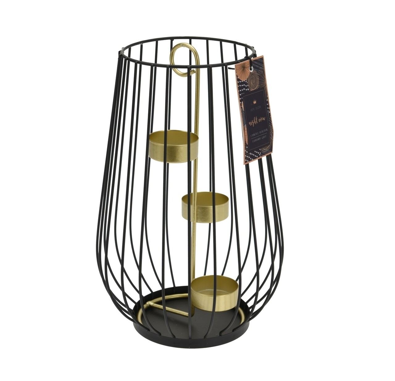 Felinar Minimalist, H25 cm, metal, negru/auriu