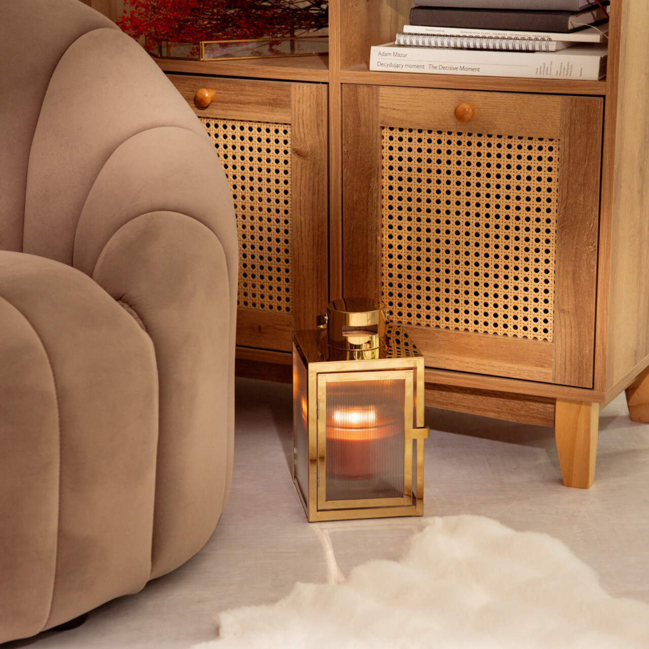 Felinar Tondo, Homla, 14x14x25 cm, metal/sticla, auriu