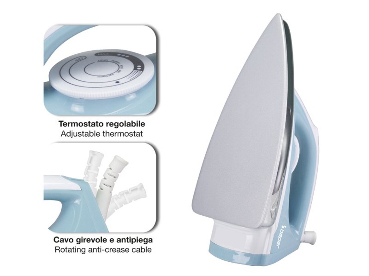 Placa antiaderenta si termostat reglabil, pentru a alege temperatura potrivita in functie de haina de calcat.