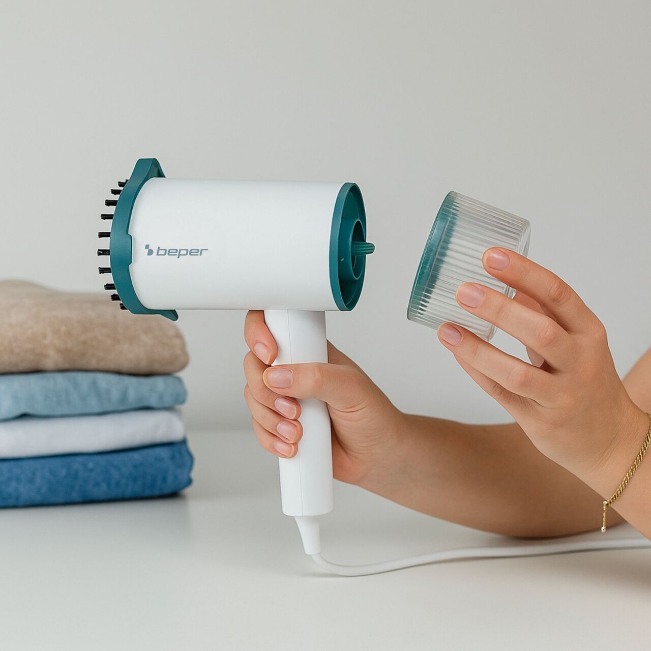 Fier de călcat vertical cu aburi Beper, 17.5x8x21.5 cm, 1200 W, plastic, alb