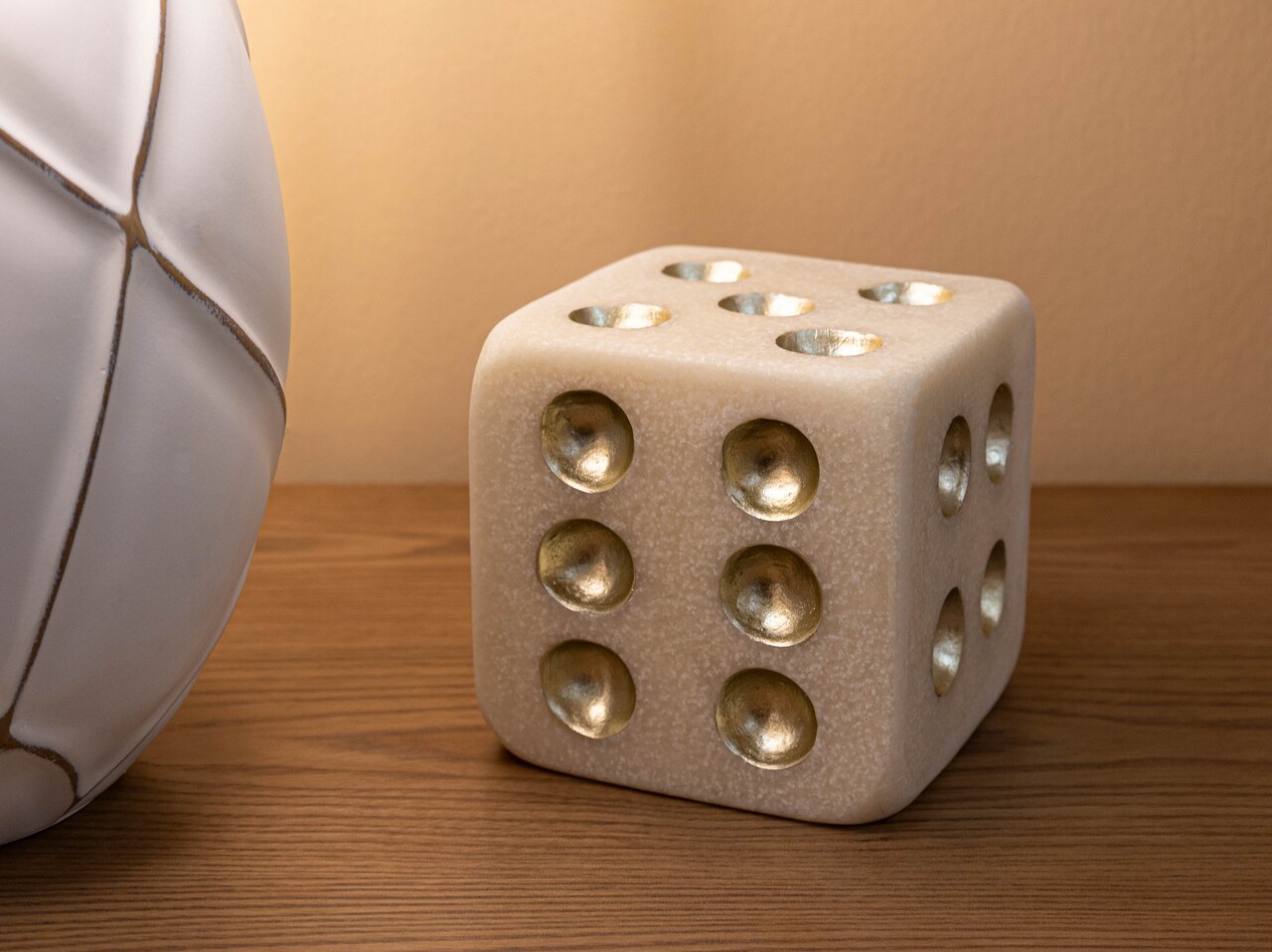 Figurina decorativa Zar Dice Quarzy, Mauro Ferretti, 12x12x12 cm, polirasina, alb/auriu
