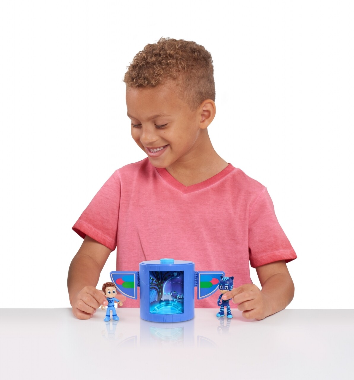 Prin apasarea unui buton puteti urmari cum personajul vostru favorit se transforma in super erou. Setul include o figurina Connor, o figurina Pisoi si setul care transforma personajul in erou.