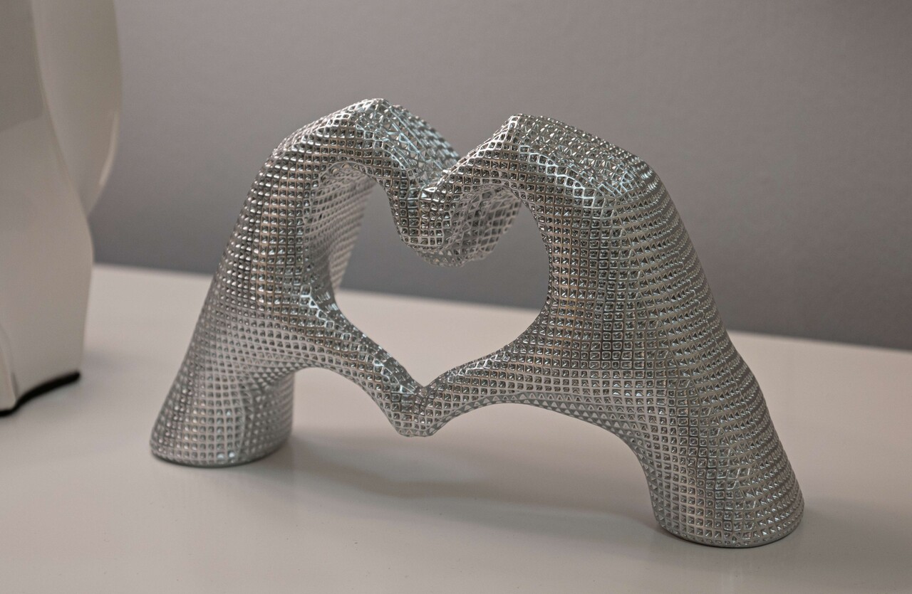 Figurina /sculptura decorativa Hands Lover, Mauro Ferretti, 25x7.5x13.5 cm, polirasina, argintiu