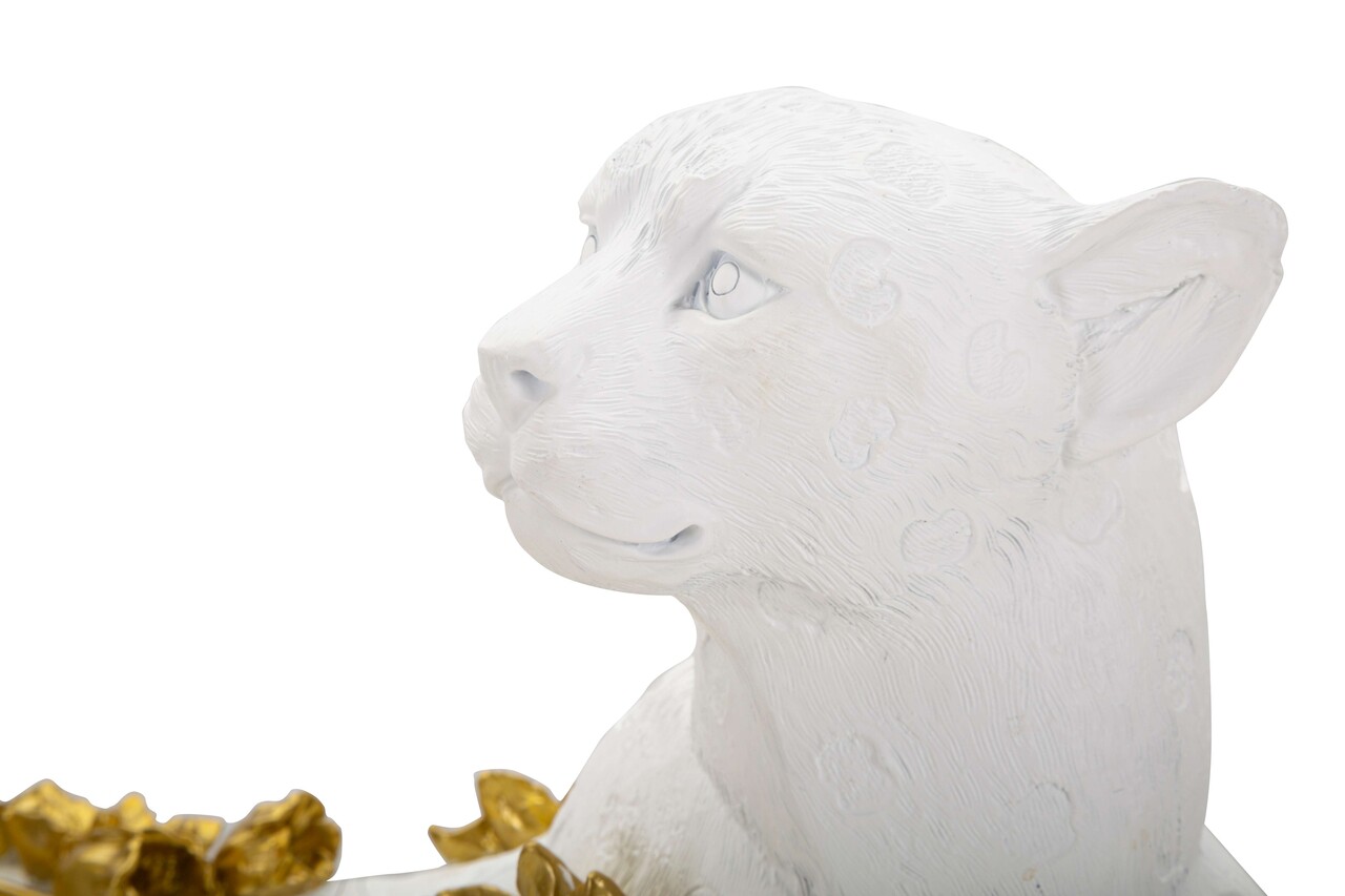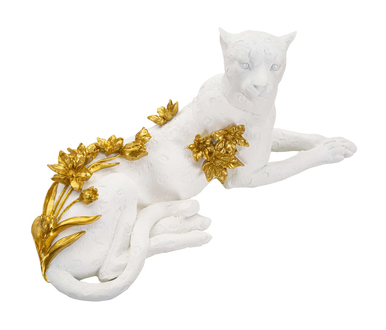 Figurina /sculptura decorativa Leopard, Mauro Ferretti, 53x21.5x24 cm, polirasina, alb/auriu