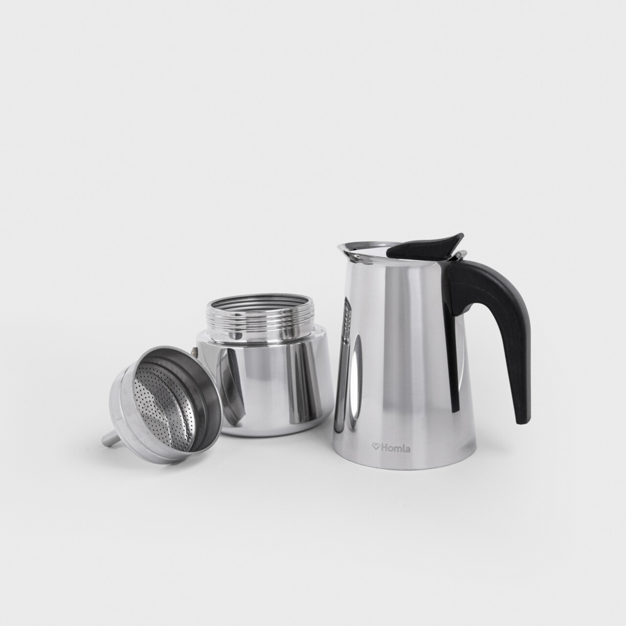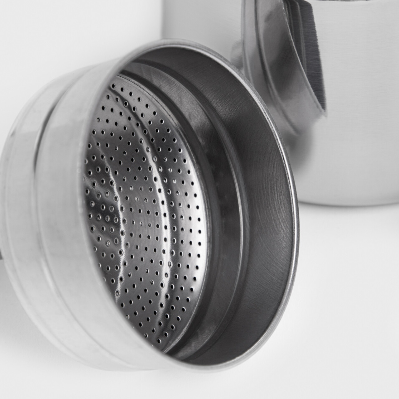 Filtrul de cafea ASTAR MOKKA este alegerea perfecta pentru iubitorii de espresso si pentru toti cei care pretuiesc metodele traditionale de preparare a cafelei. Capacitatea sa de 300 ml este suficienta pentru 9 cesti de espresso, ceea ce il face perfect pentru utilizarea de zi cu zi sau pentru intalniri cu cei dragi. Poate fi folosit pe toate tipurile de aragaz, inclusiv inductie, fiind astfel extrem de universal.