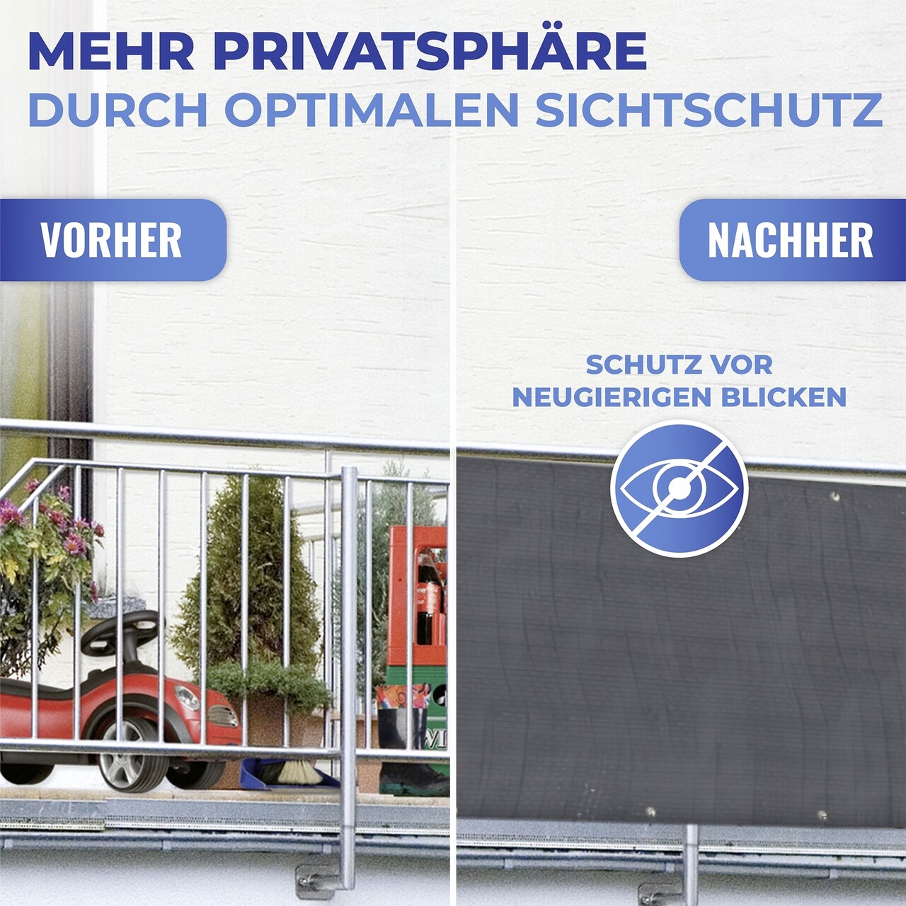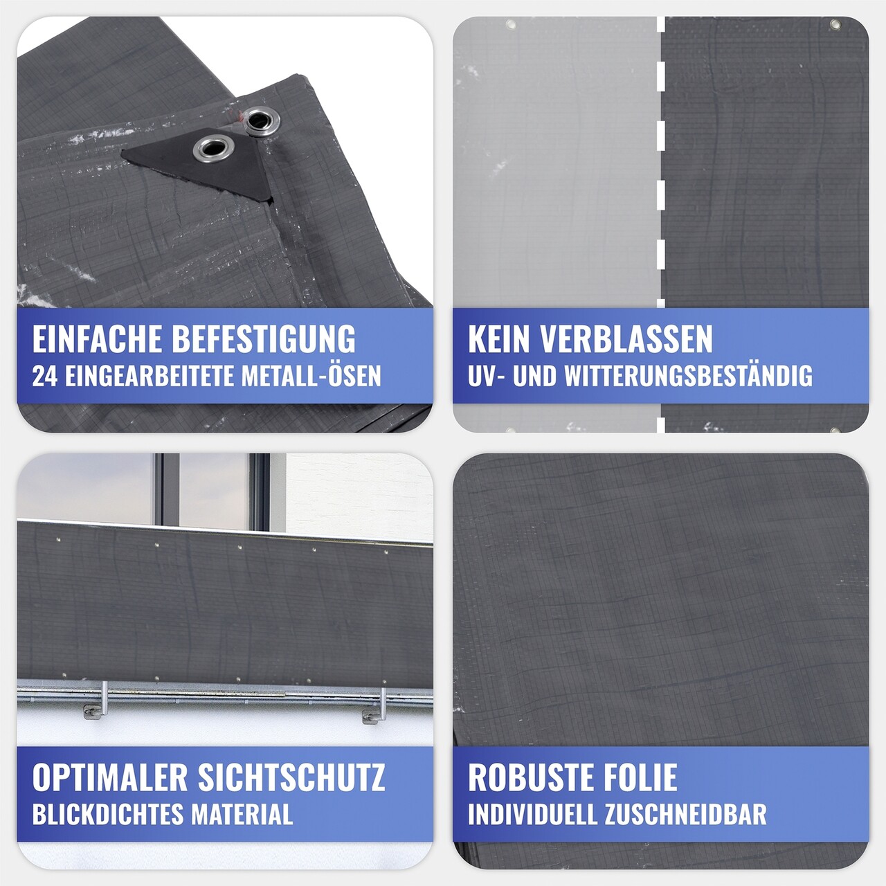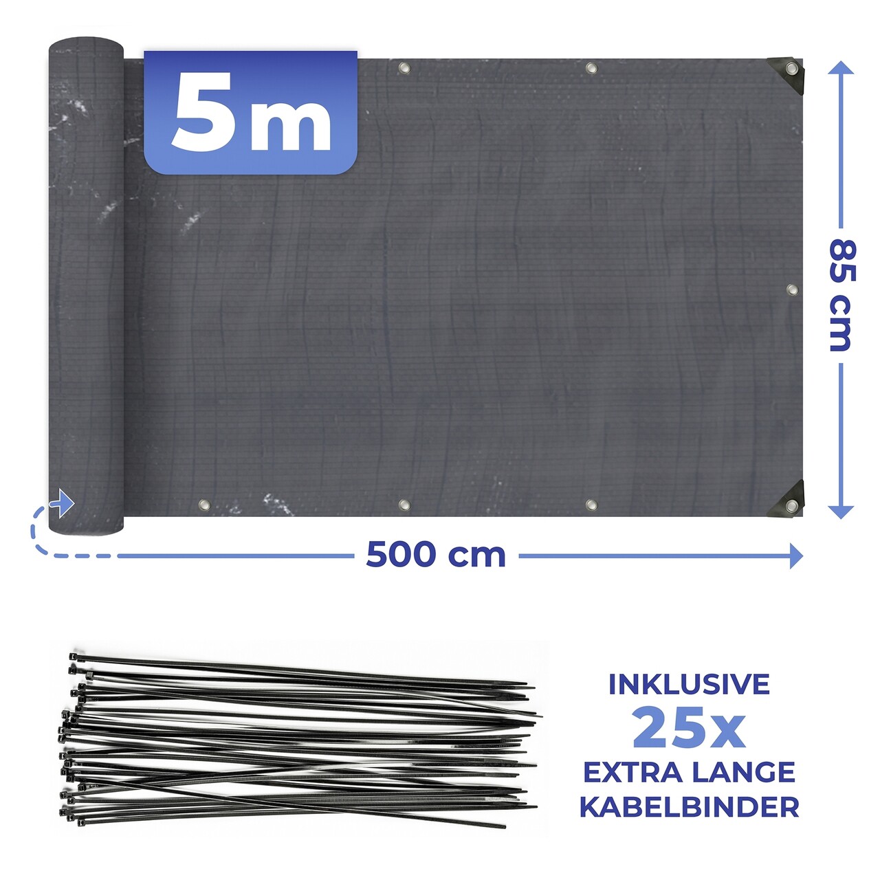 Cu o lungime de 5 metri si o inaltime de 85 cm, inclusiv 25 de cleme extra lungi, rezistente la UV, pentru o fixare optima, folia paravan pentru balcon ofera flexibilitate si durabilitate. De asemenea, poate fi taiata cu usurinta la lungime si inaltime pentru a se potrivi perfect balconului dumneavoastra.
