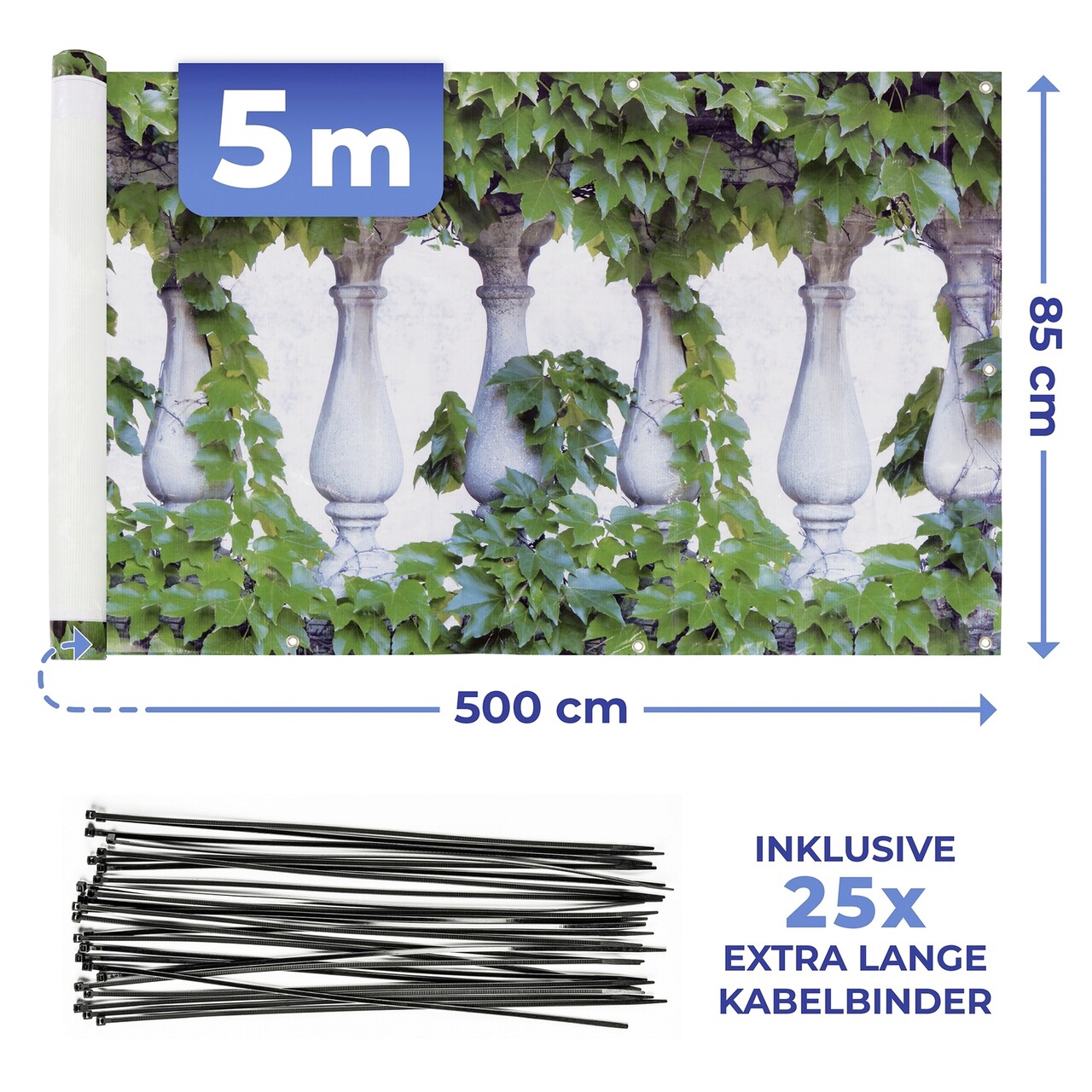 Folia paravan pentru balcon este ideala pentru cei care vor sa aiba parte de intimitate. Material rezistent la intemperii, rupere, se usuca rapid. Sunt incluse 25 de legaturi pentru fixare optima. Poate fi taiata daca este nevoie.