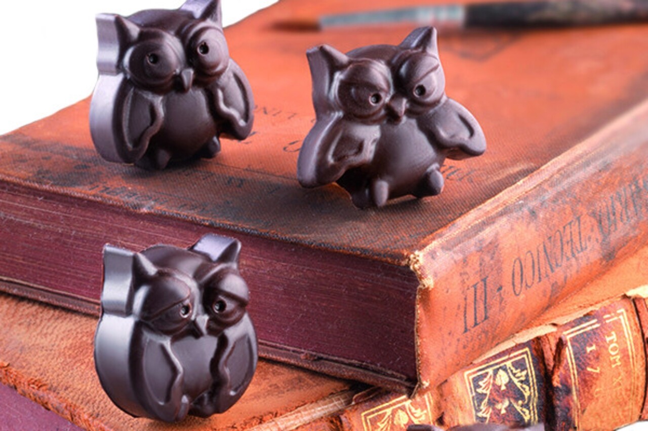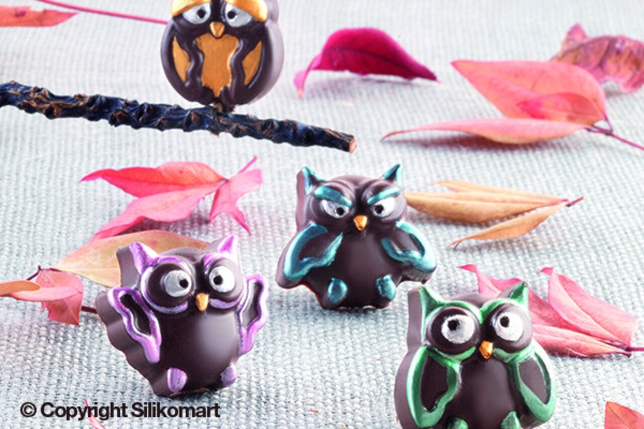 Owls din gama Silikomart Easy Choco este o forma de copt tip matrita care va permite sa creati bomboane in forma de bufnite simpatice.