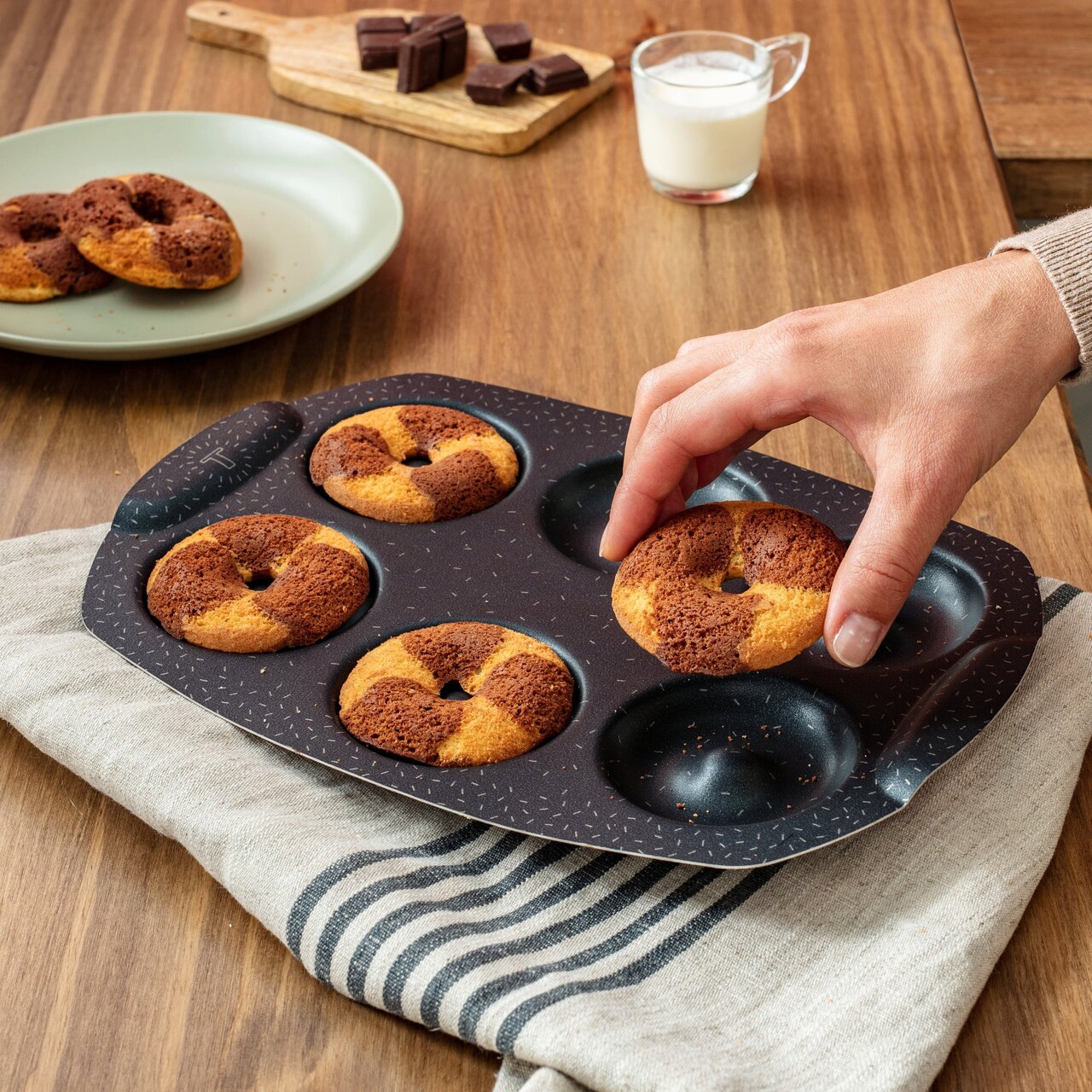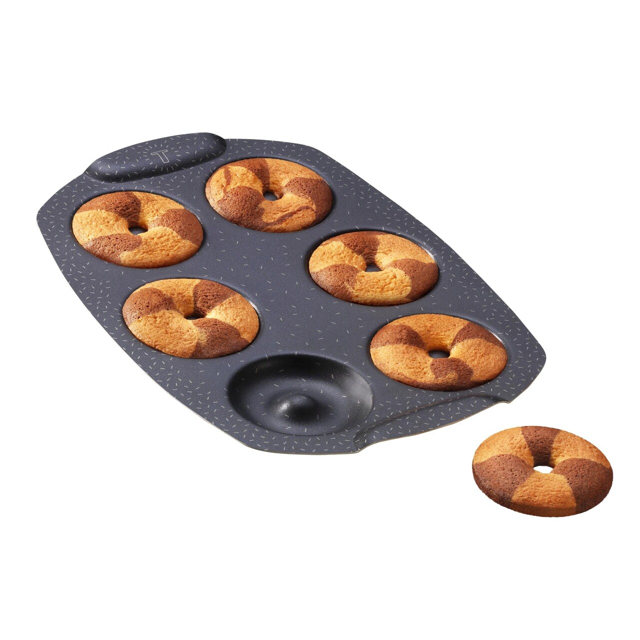 Forma de copt mini gogosi, Tefal, PerfectBake J5734602, 21 x 29 cm, aluminiu reciclat, negru/maro